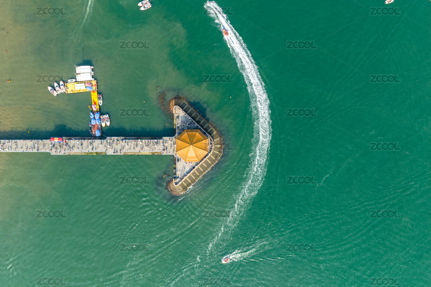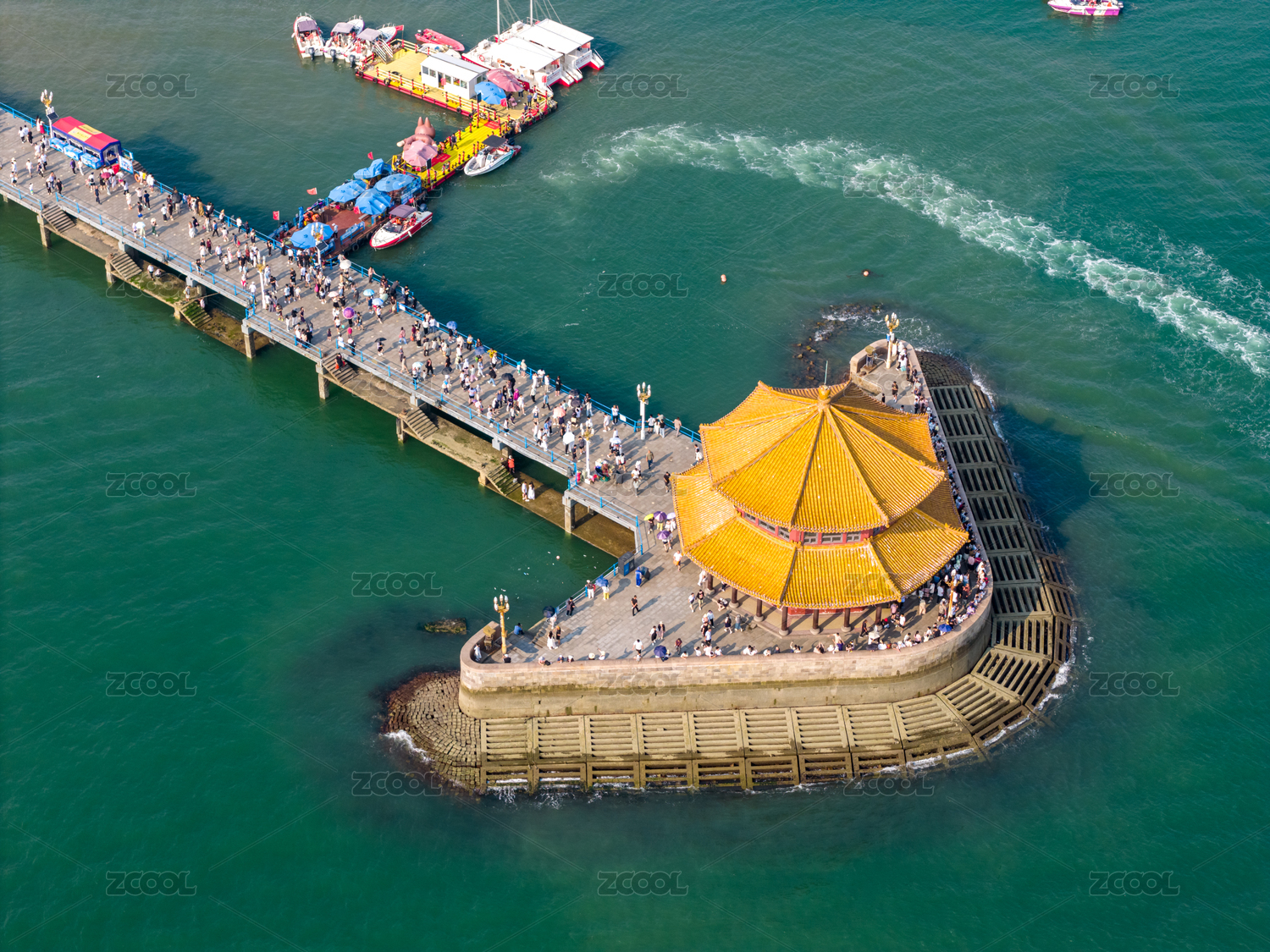 無人機(jī)視角俯瞰中國(guó)山東省青島棧橋碼頭