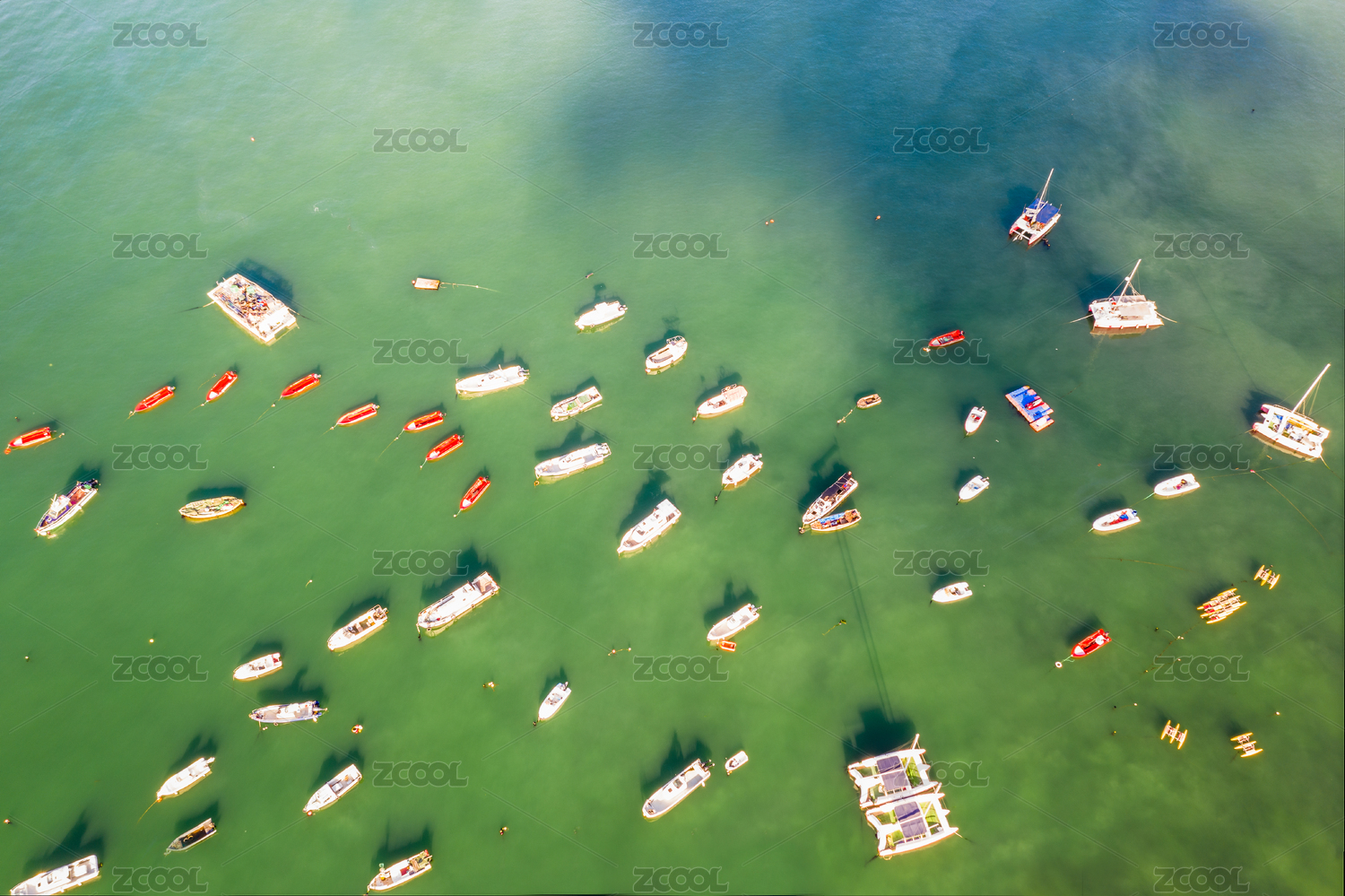 熱帶風(fēng)情海邊木棧橋碼頭和停靠的船只茅草涼亭