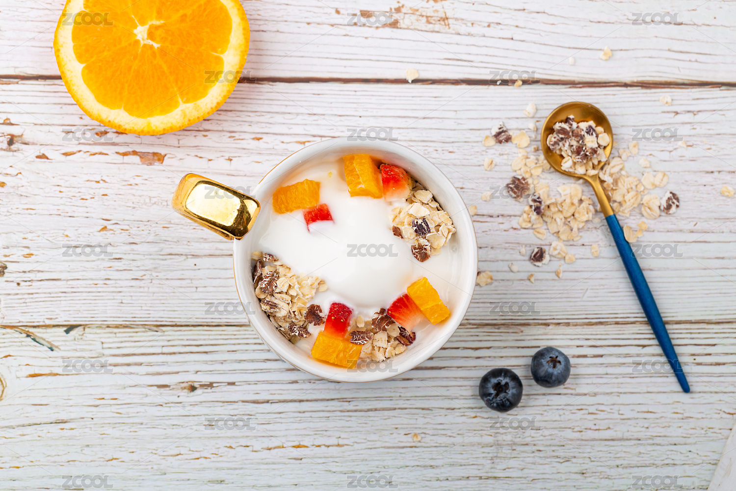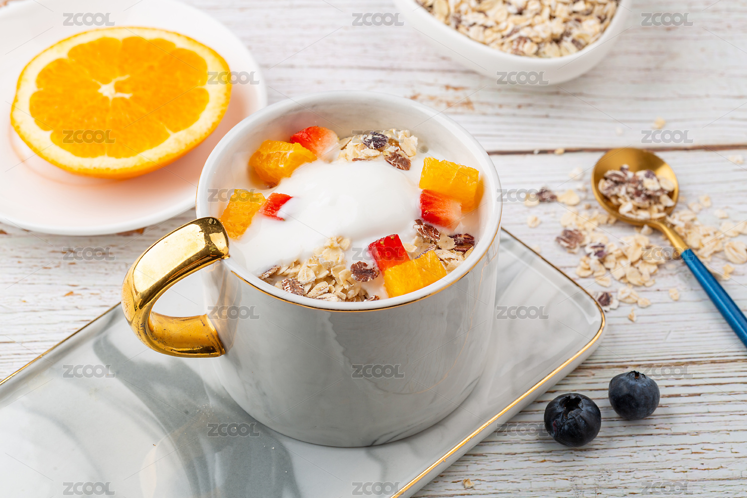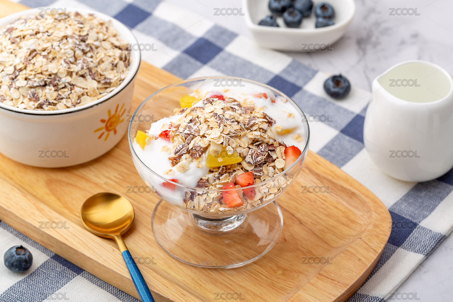 早餐代餐美食:水果酸奶黑麥片
