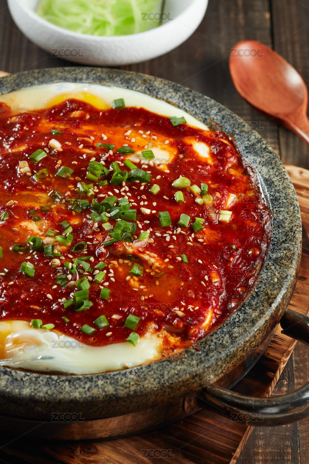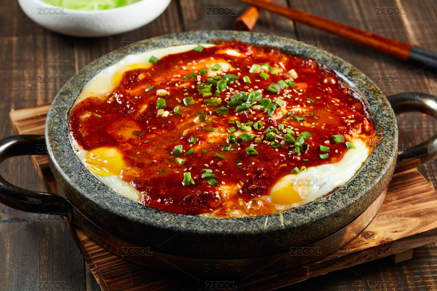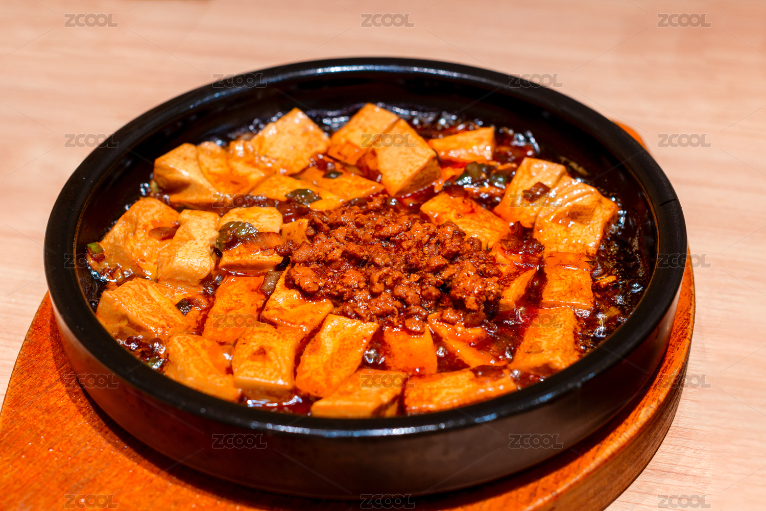 木紋桌上的麻辣石鍋豆腐