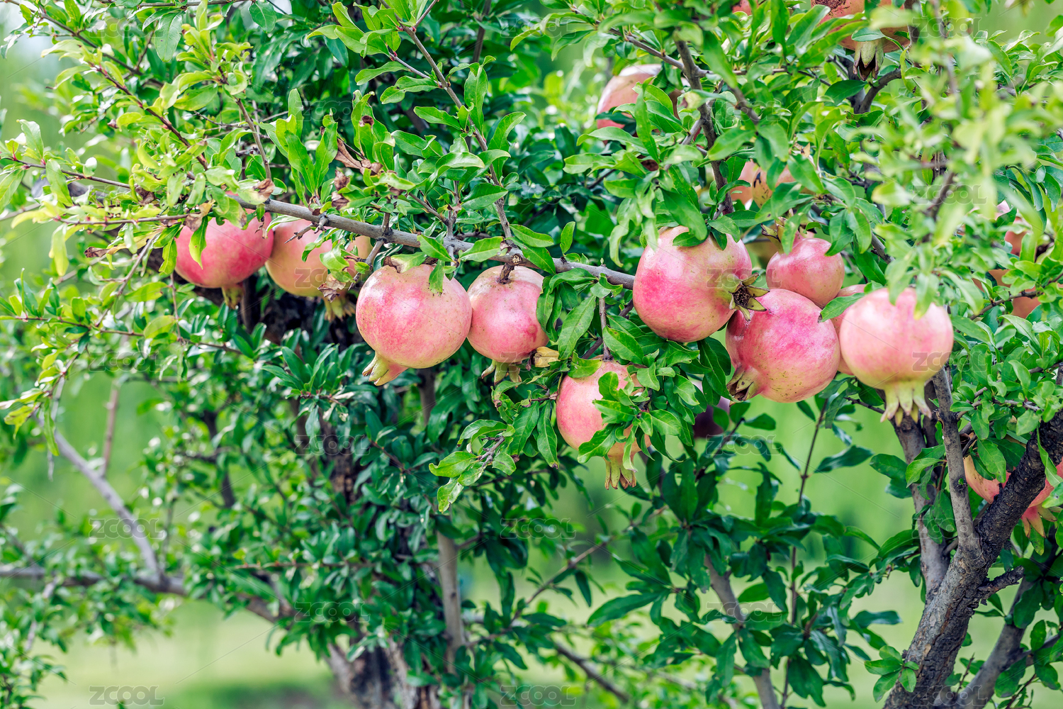 樹(shù)上的生長(zhǎng)中的許多粉紅色石榴