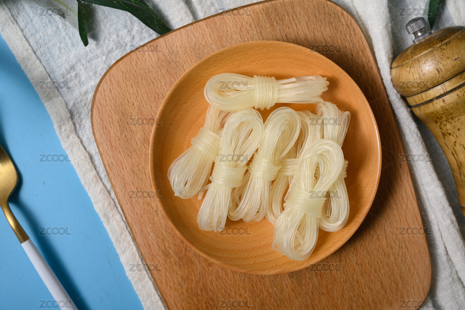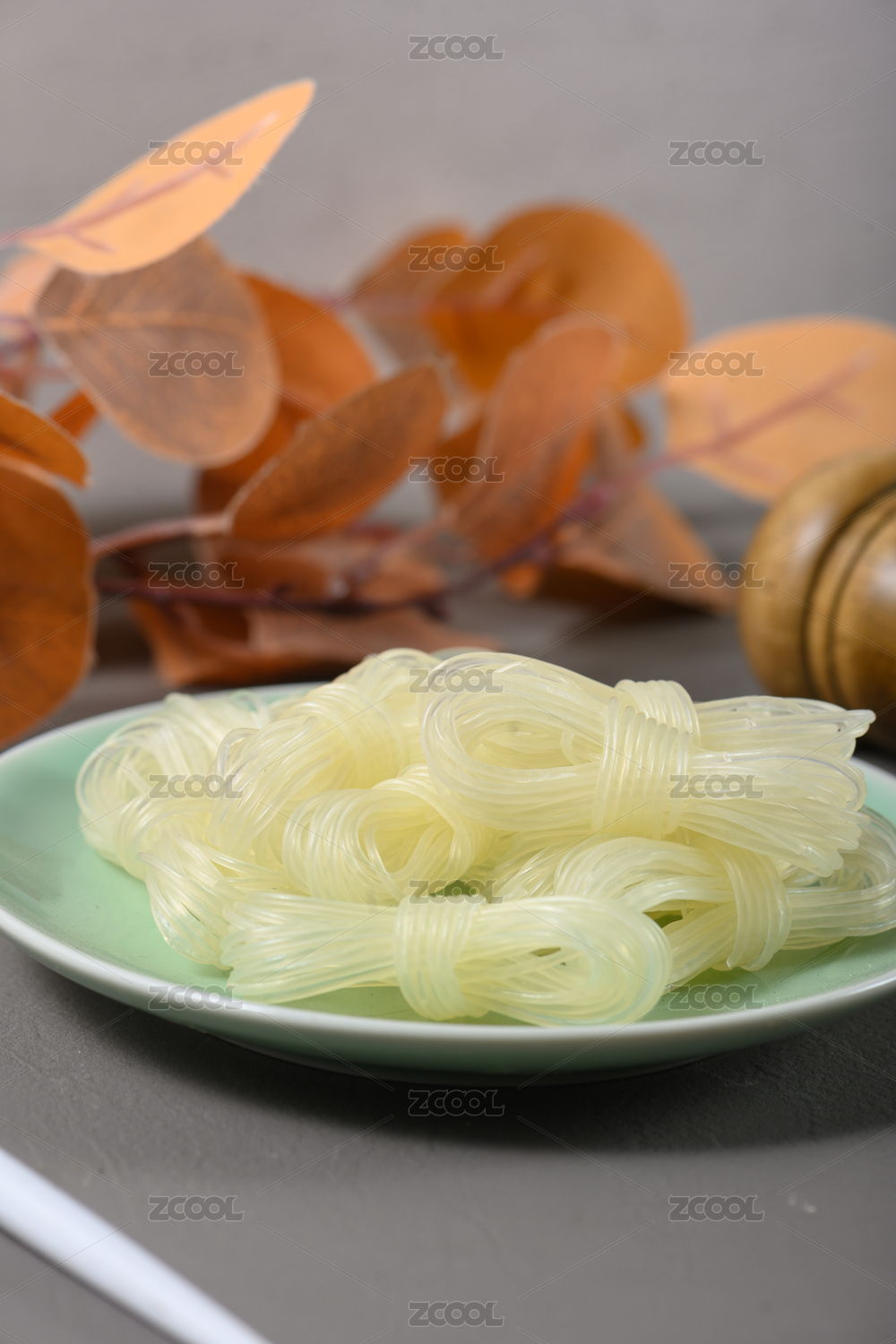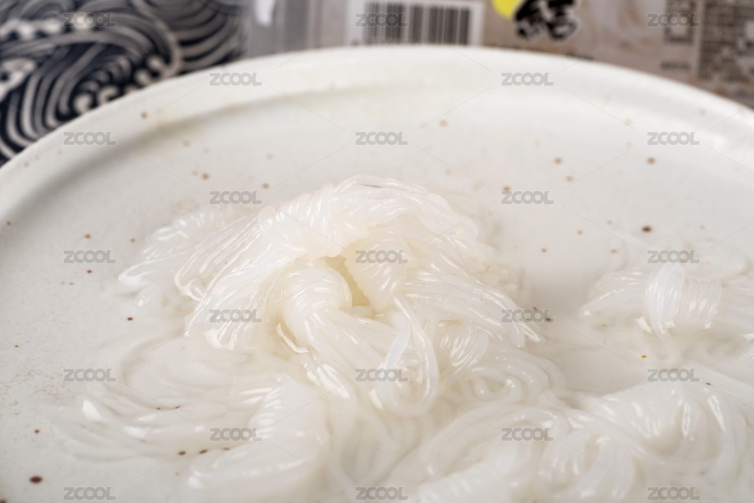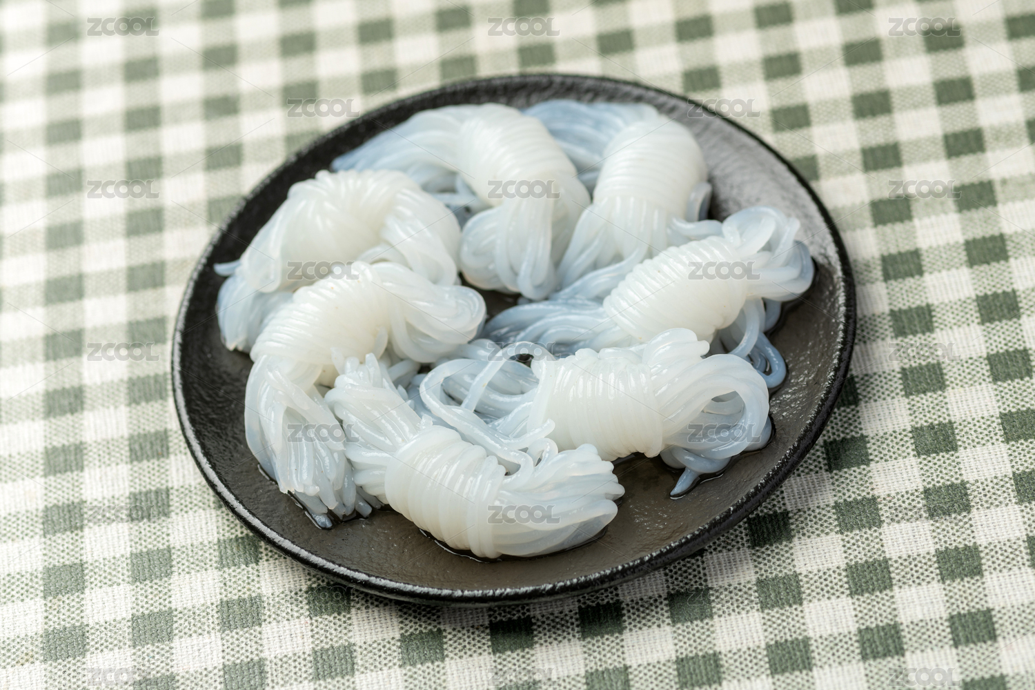桌面上的盤子里的美味可口的干魔芋絲結(jié)