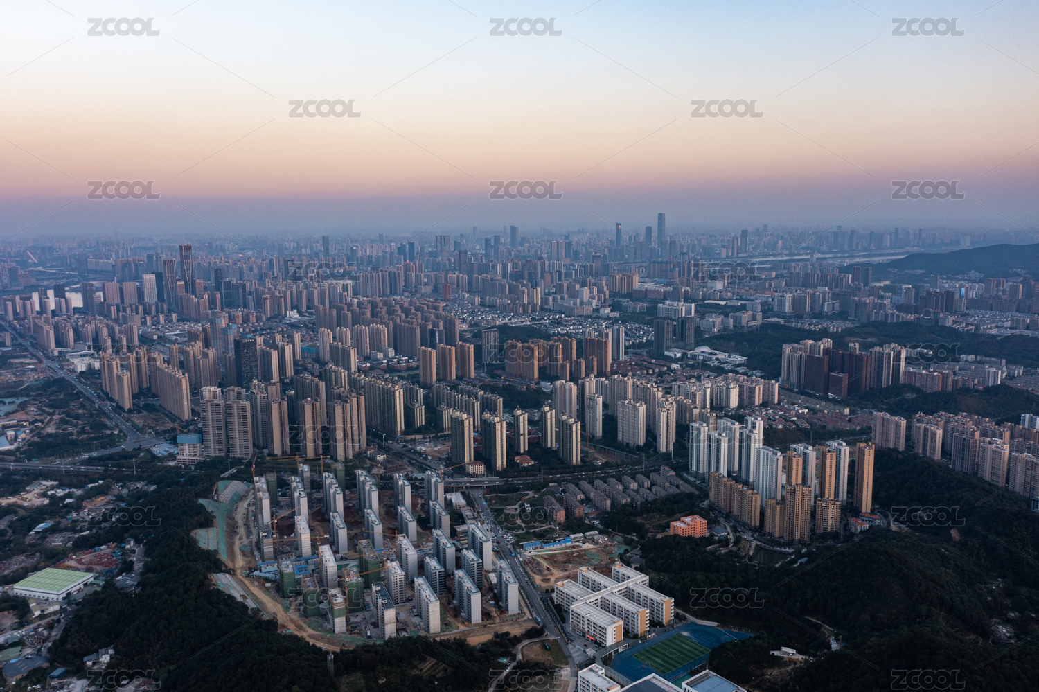 長沙谷山森林公園晚霞藍(lán)調(diào)航拍
