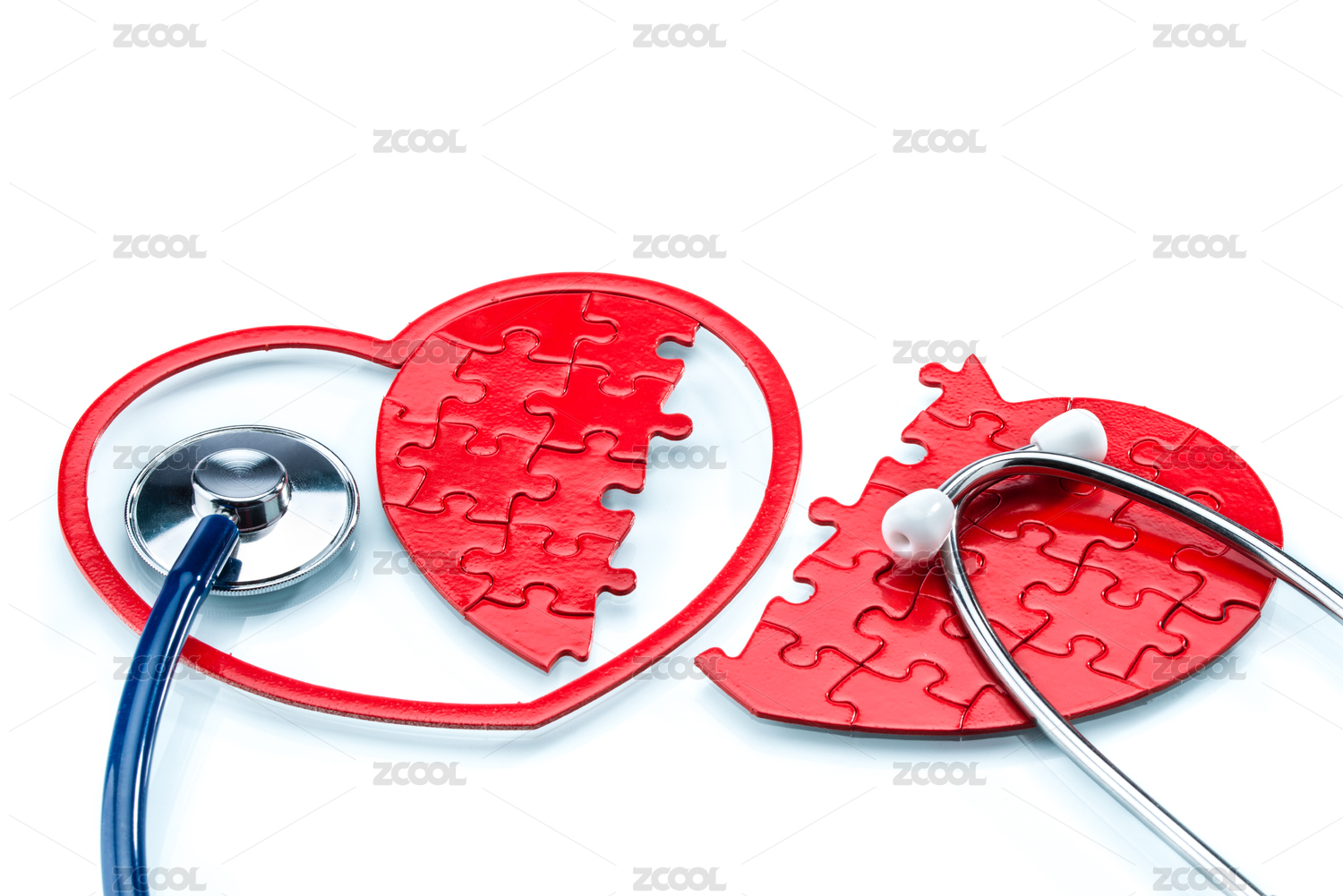 心臟疾病,斯普利特心臟形拼圖白色背景上的聽(tīng)診器