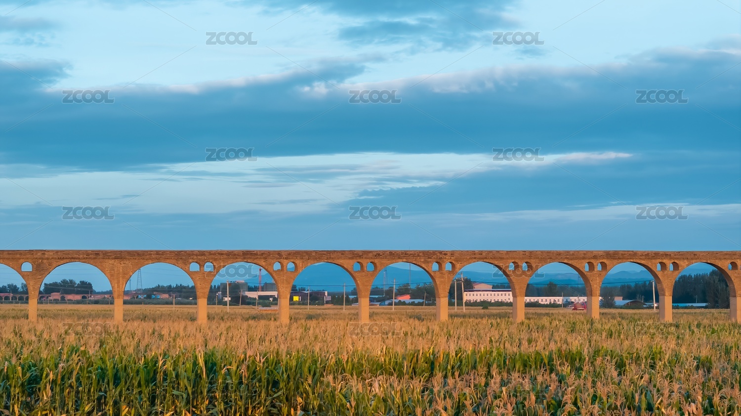 清晨陽(yáng)光農(nóng)田玉米農(nóng)田水利灌溉渡槽
