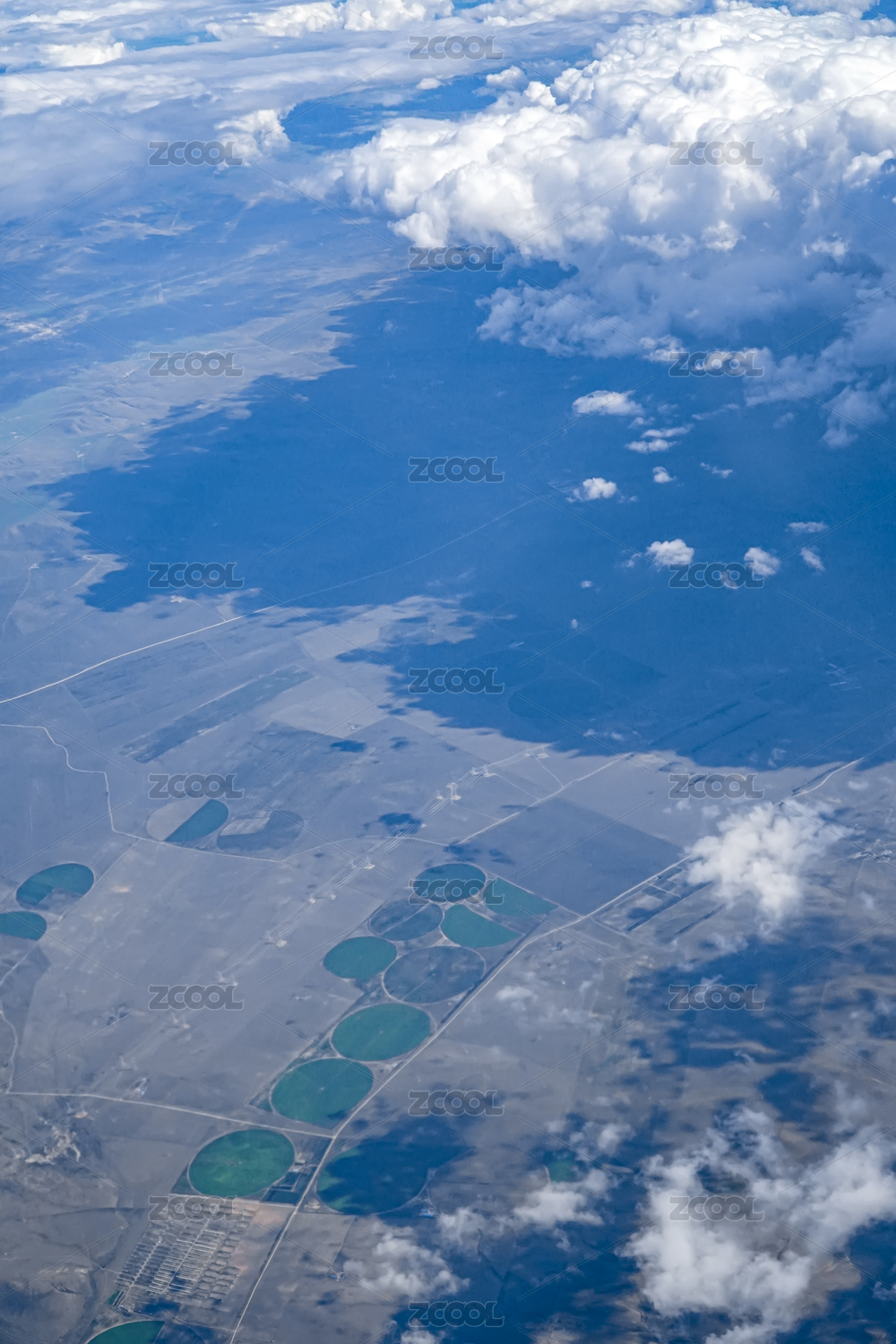 航拍中國(guó)內(nèi)蒙古草原干旱區(qū)的圓形農(nóng)田