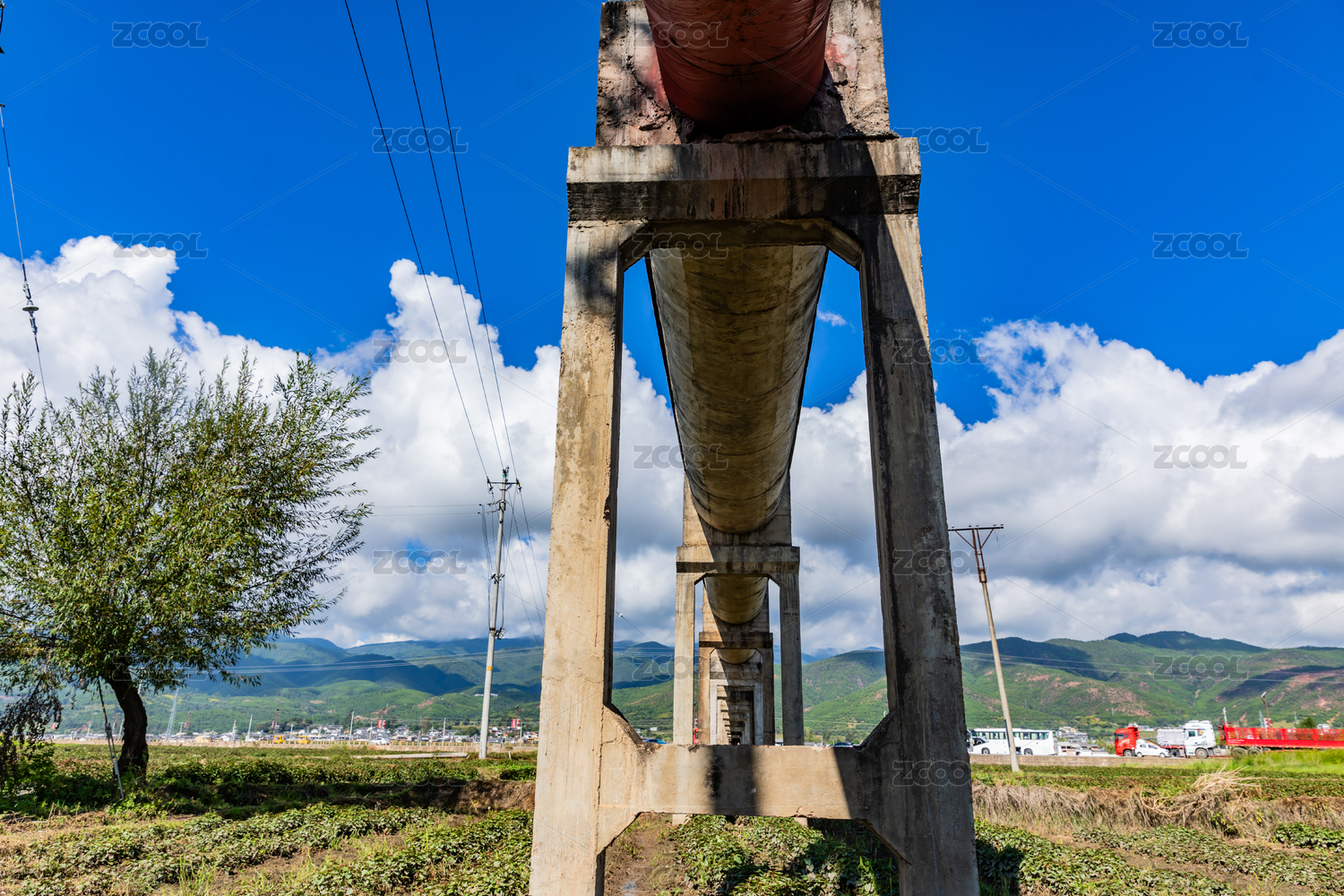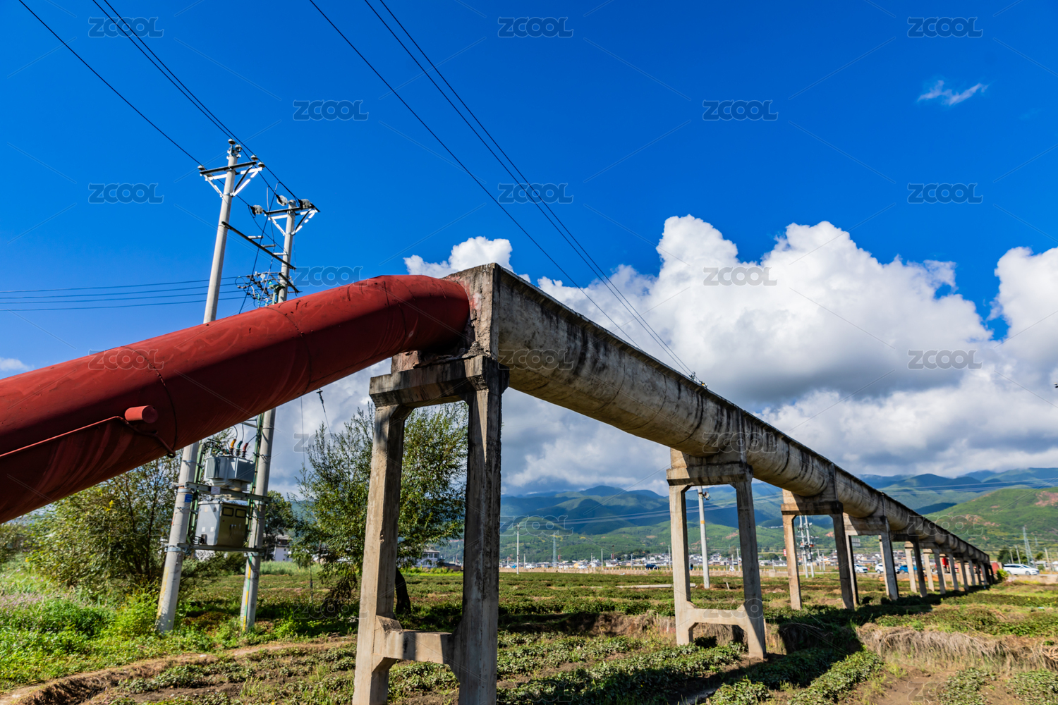 藍(lán)天白云下的輸水管道
