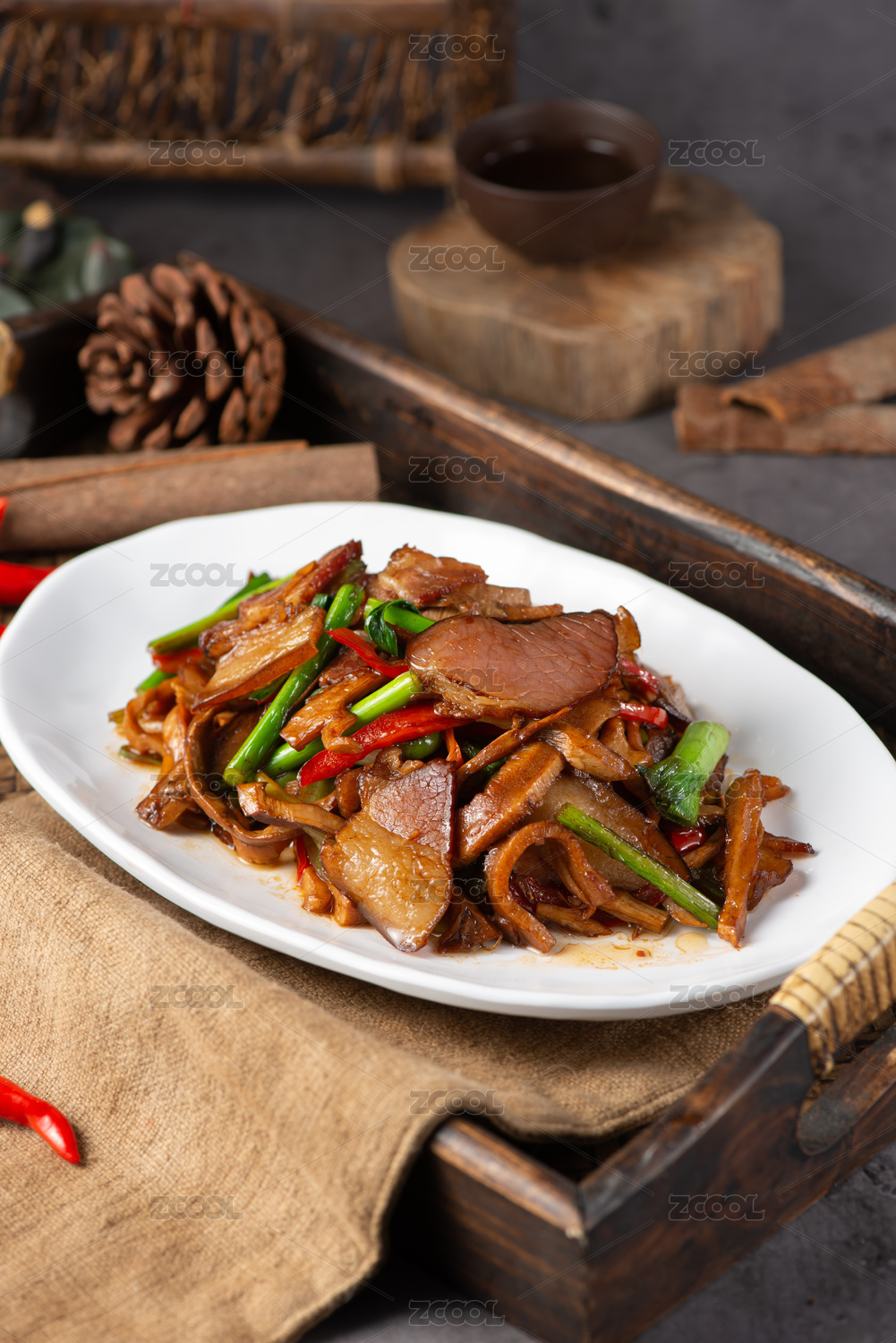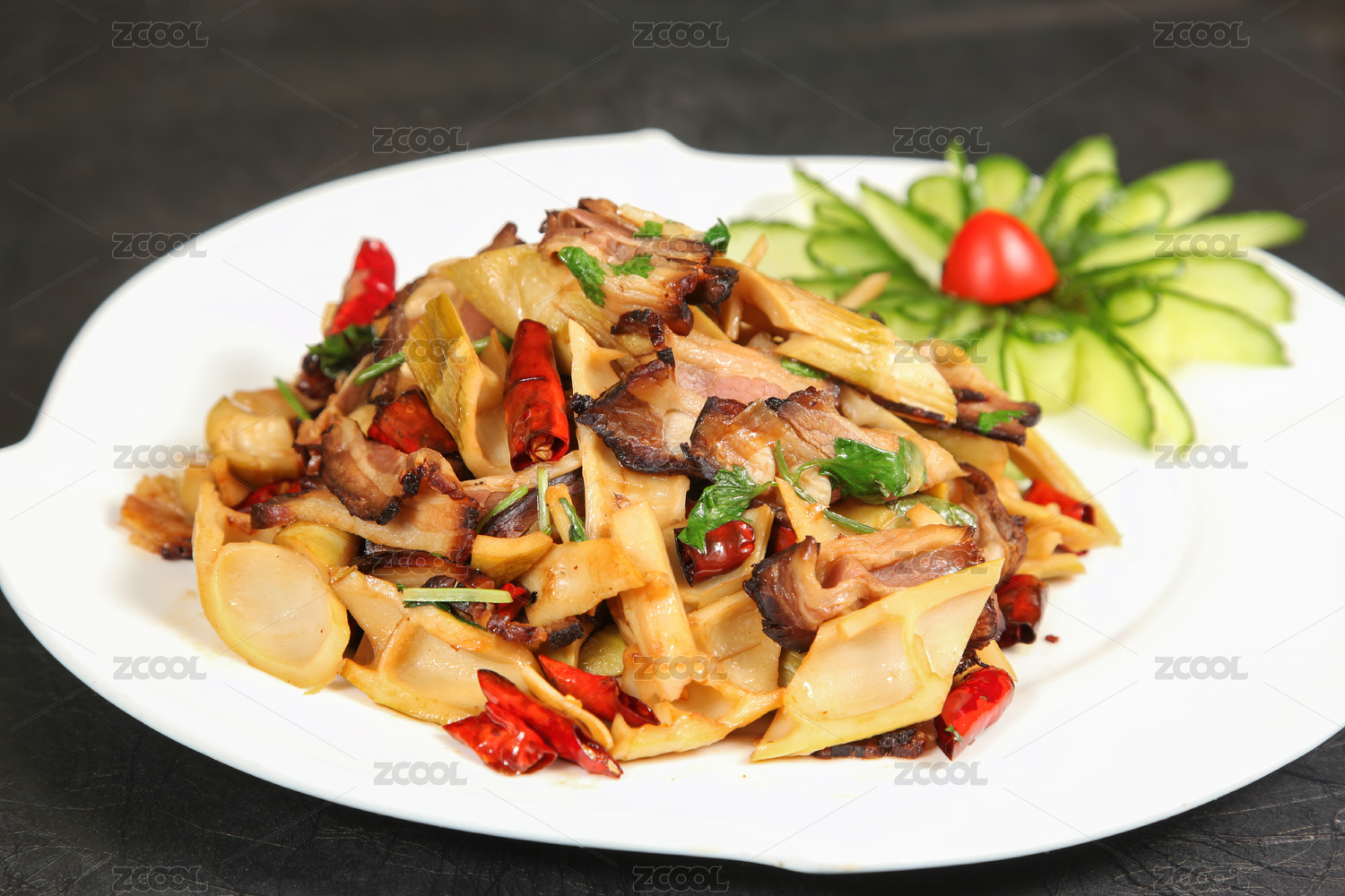 中國美食湘菜小炒煙筍炒臘肉