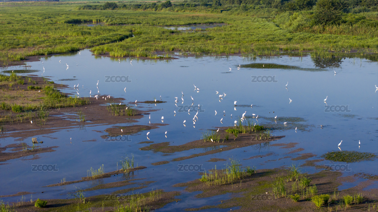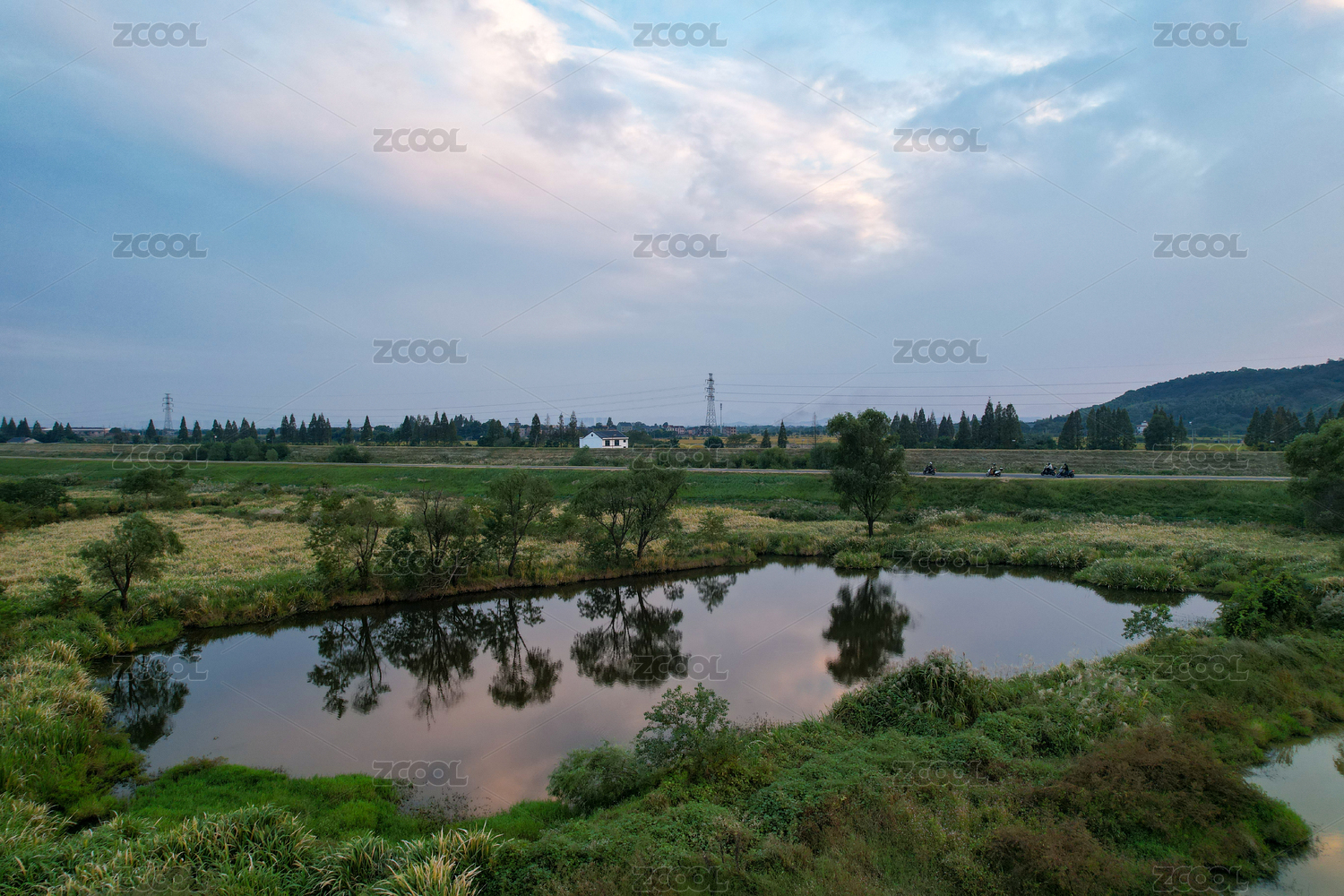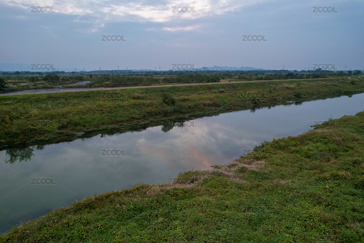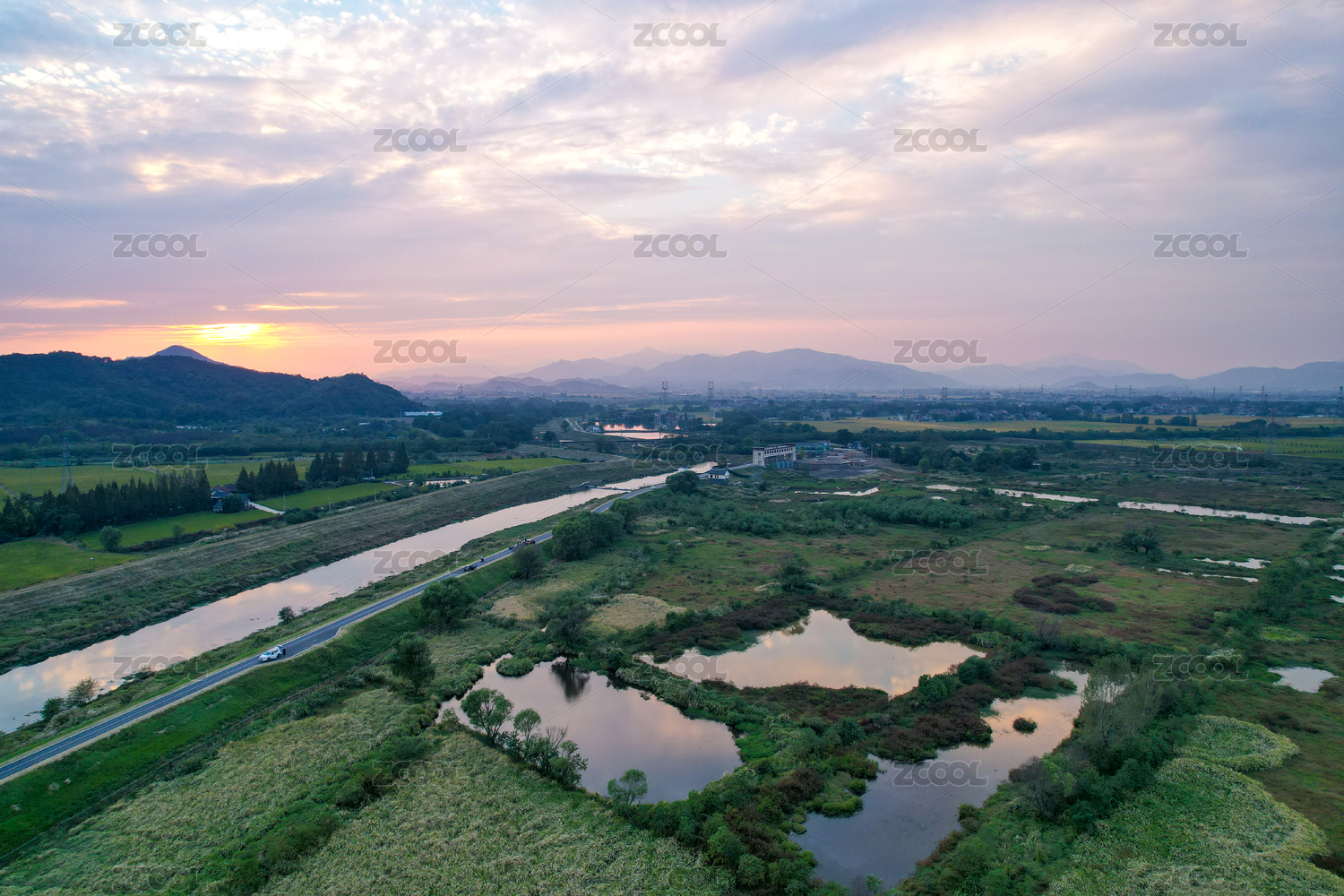 余杭苕溪夕陽(yáng)下的河流和濕地