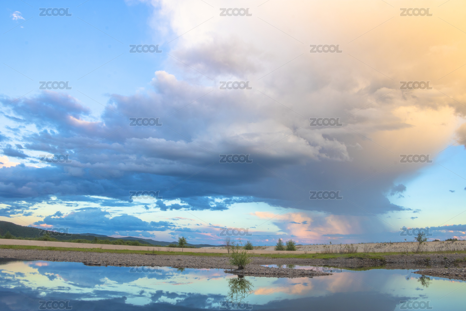 中國(guó)大興安嶺濕地的河流、植物和彩色的云