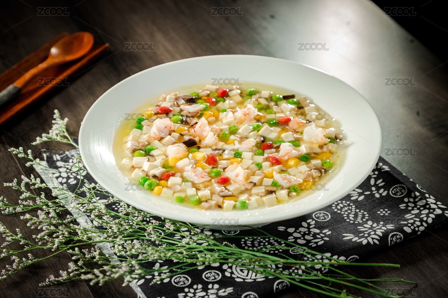 一盆滋補(bǔ)養(yǎng)生蝦仁豆腐豌豆羹湯