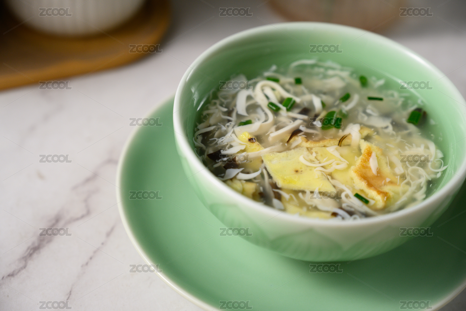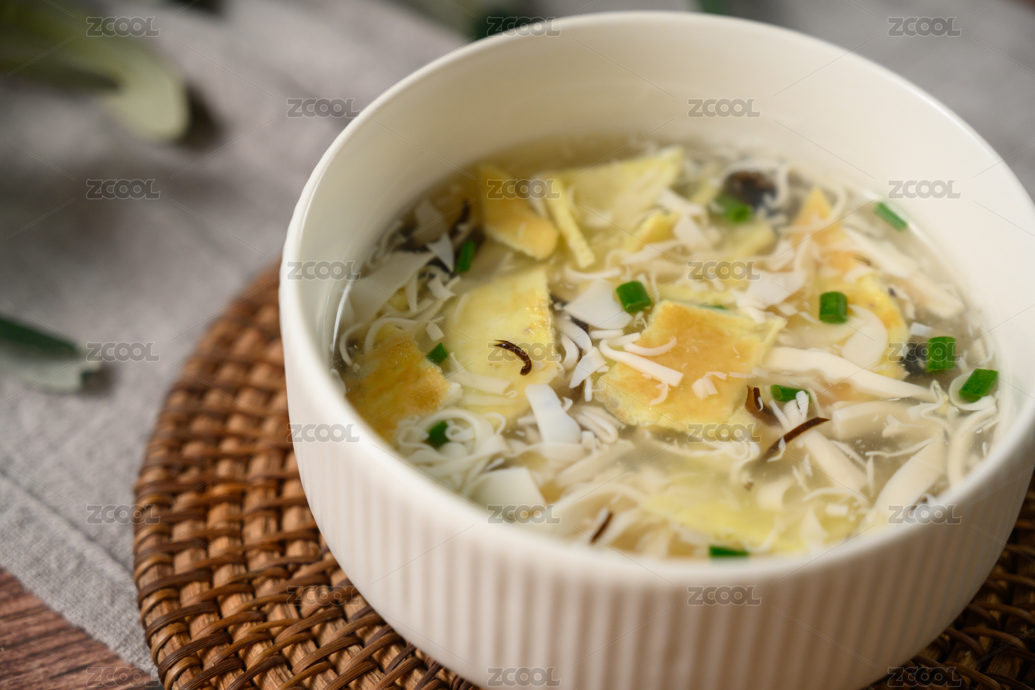 桌面上的碗里的美味可口的豆腐蛋羹