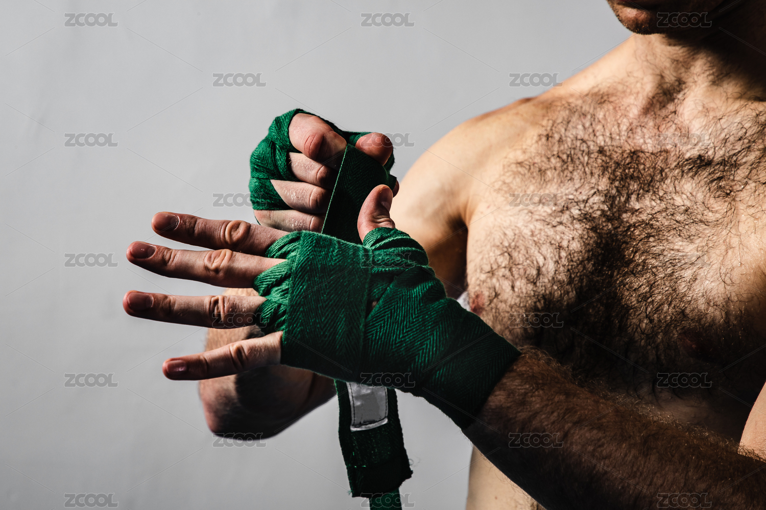 背景分離特寫肌肉線條清晰的英俊男性在纏拳擊繃帶