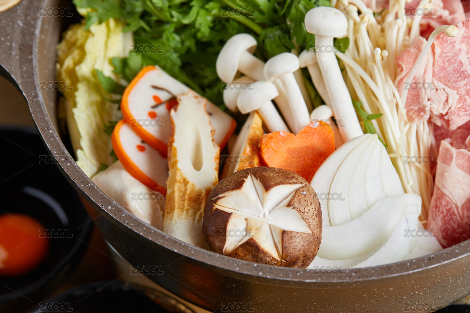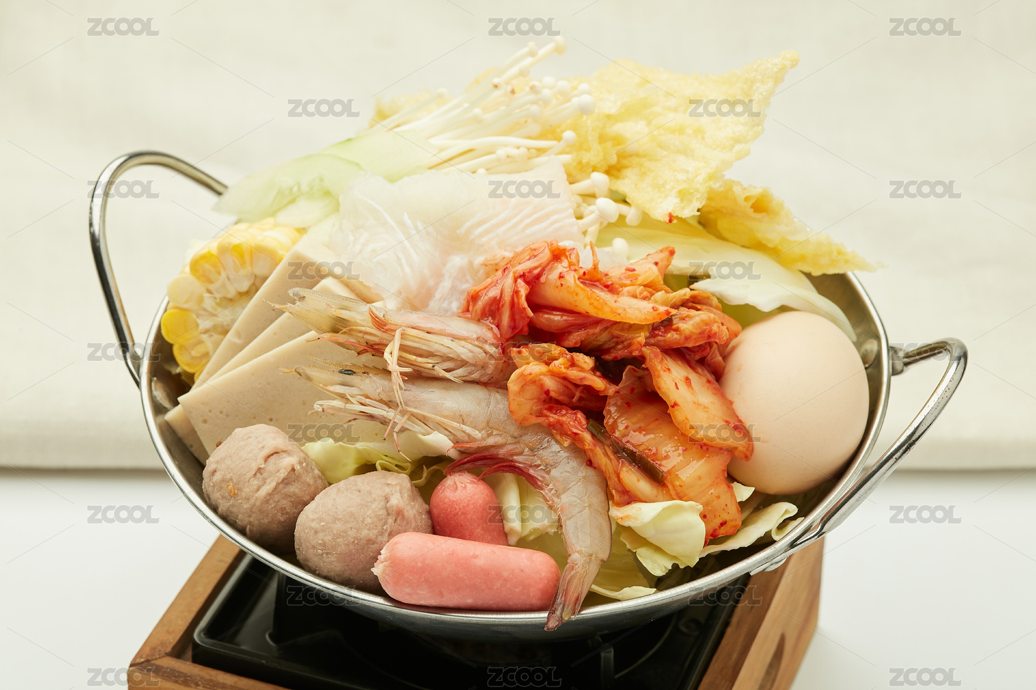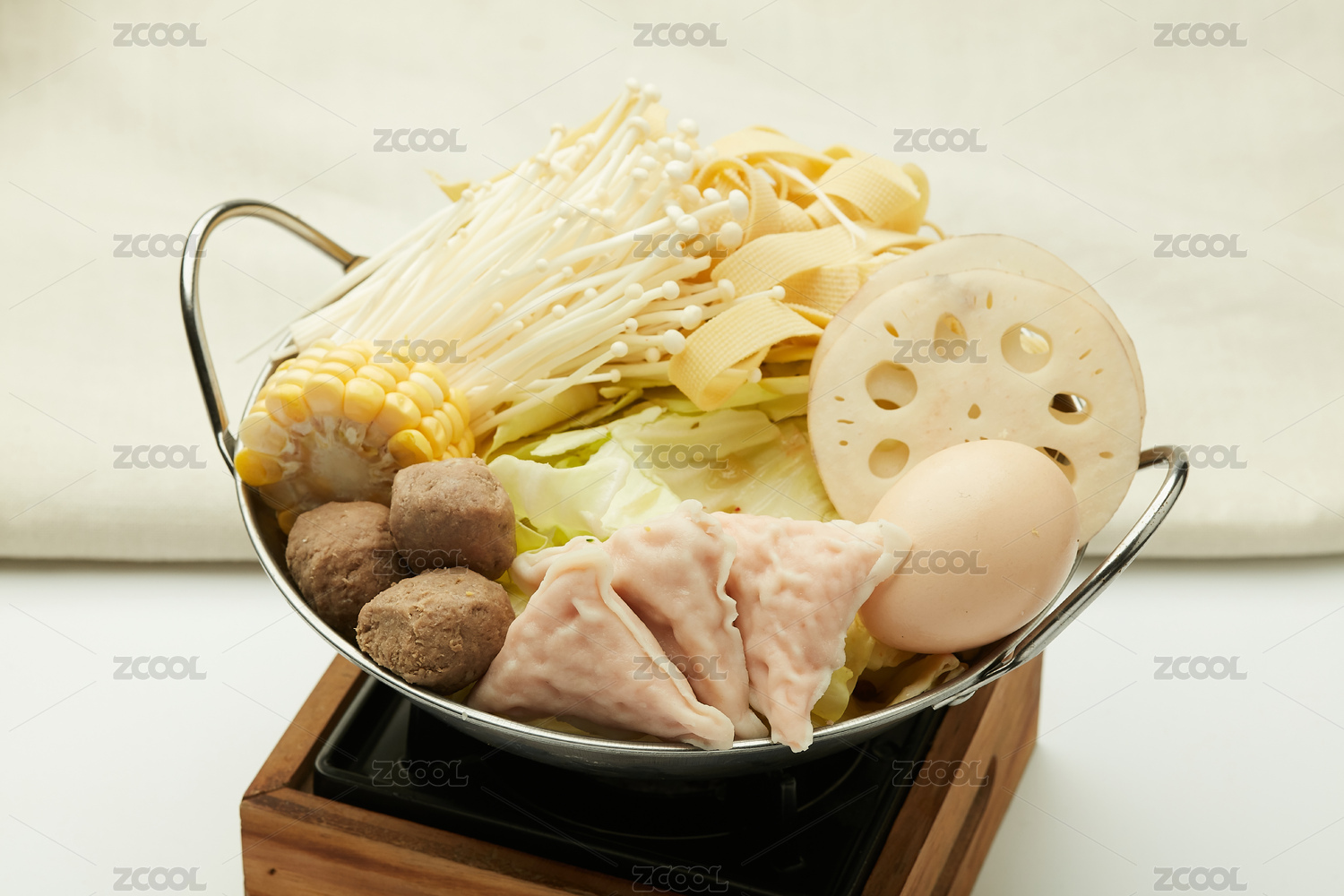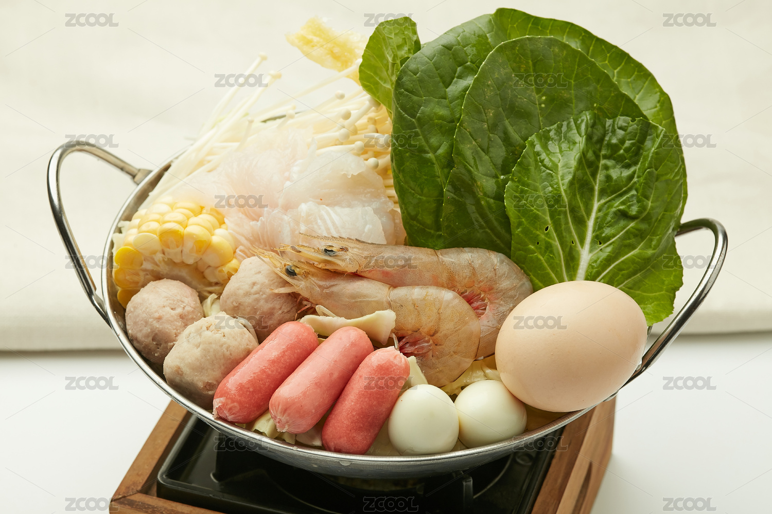 日式海鮮壽喜鍋食材放在白色陶瓷鍋內(nèi)