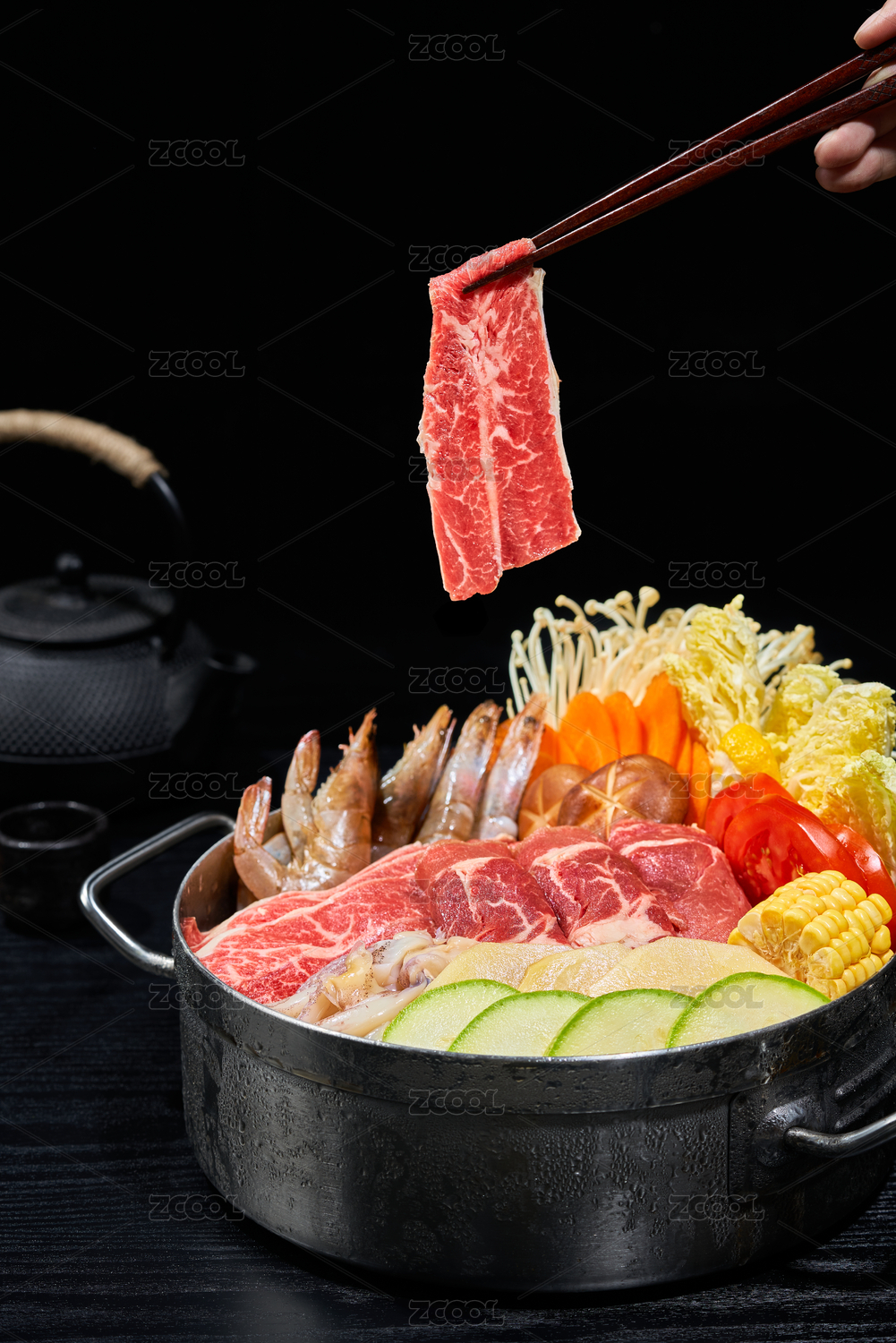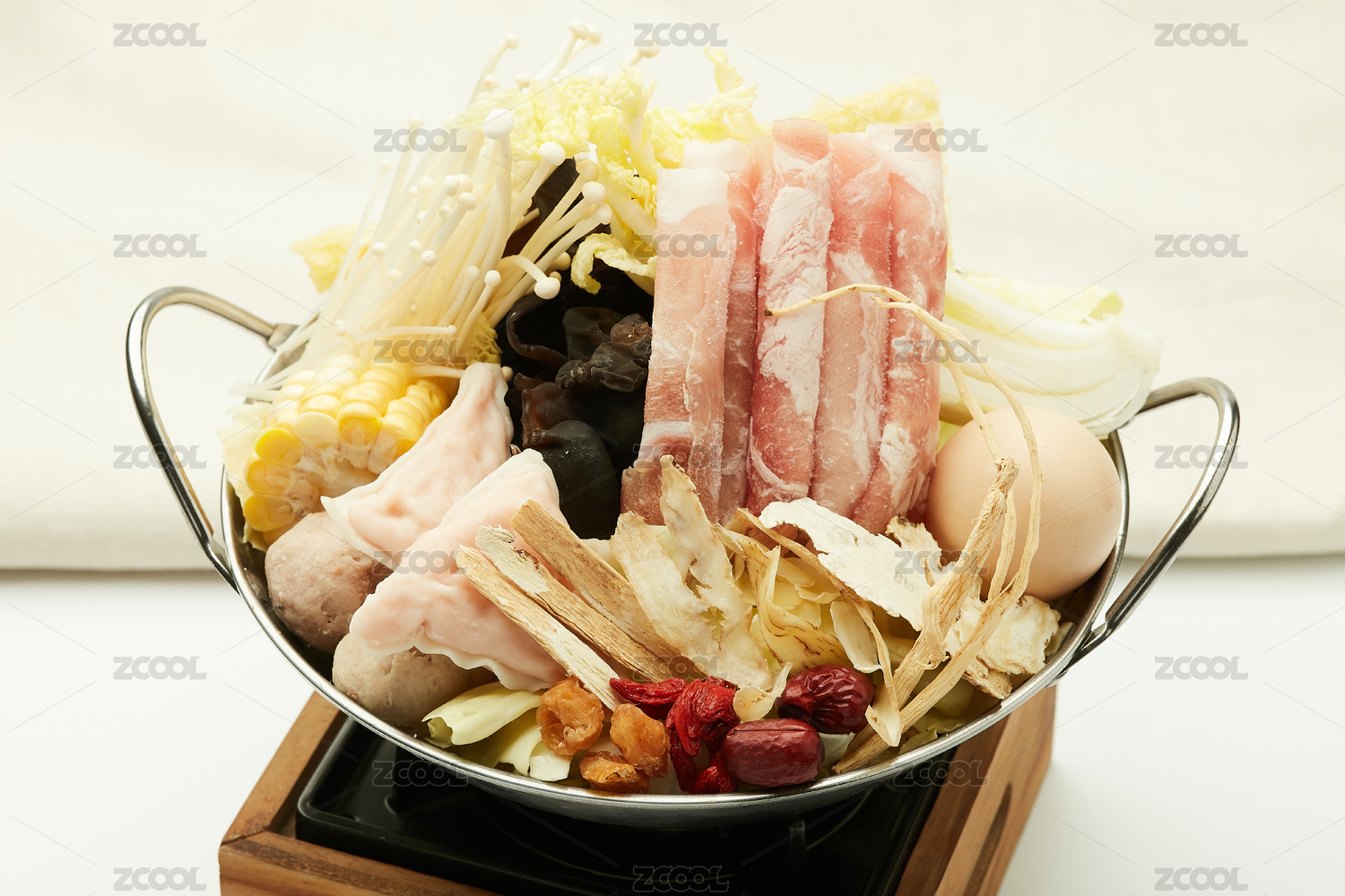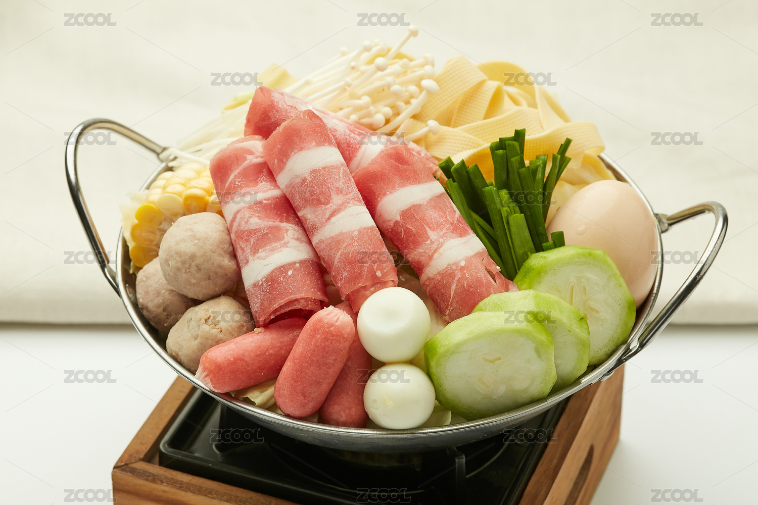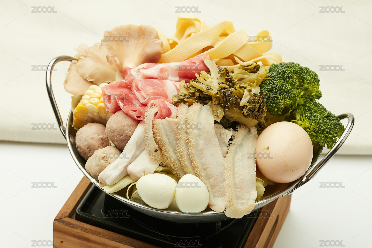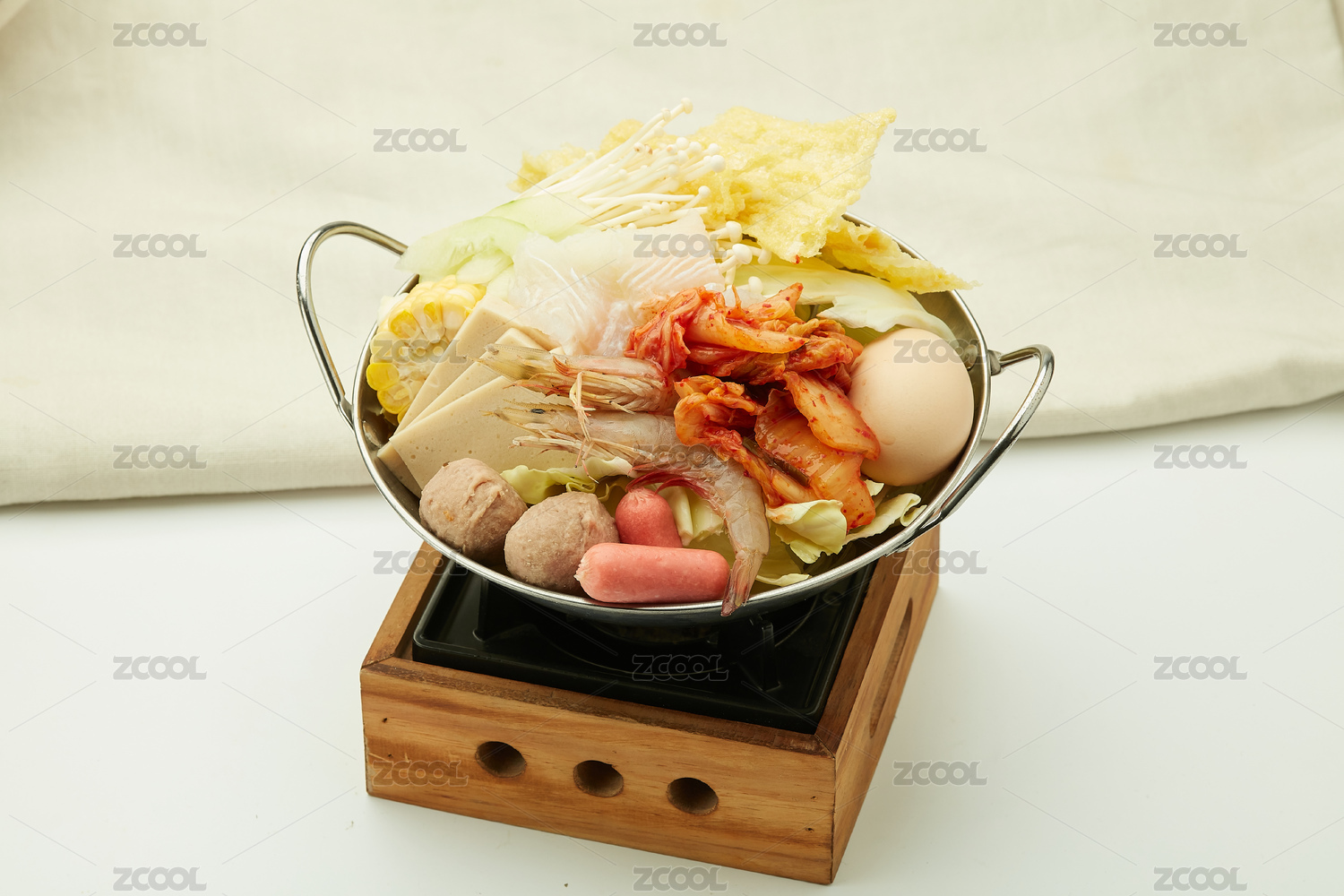 日式海鮮壽喜鍋食材放在白色陶瓷鍋內(nèi)