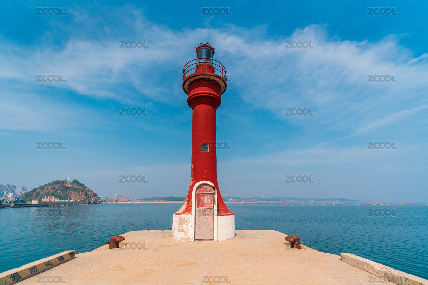 中國大連海邊的紅色燈塔