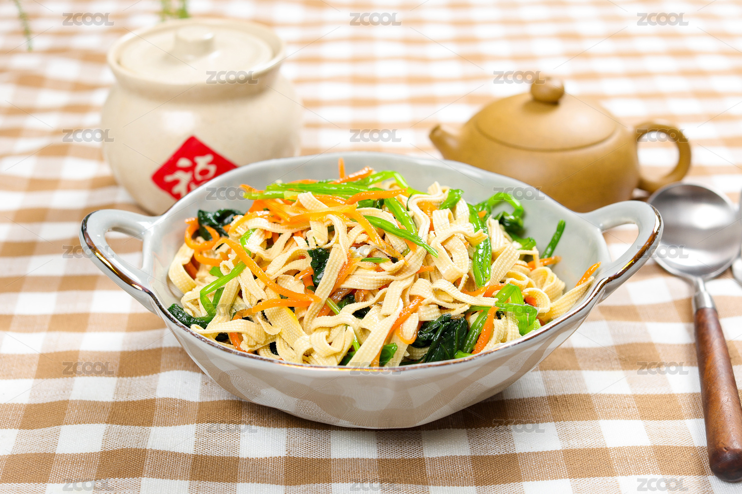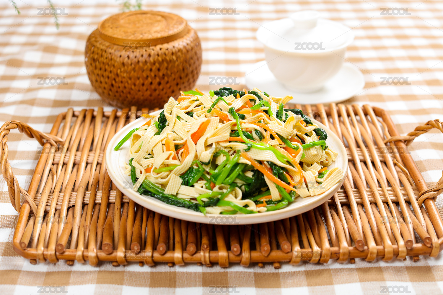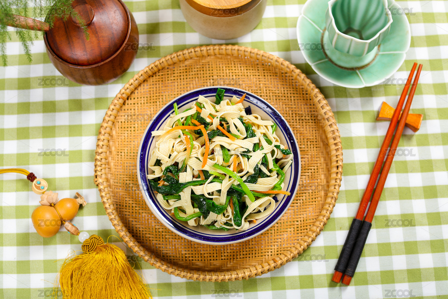 快餐外賣菜肴美食涼拌菠菜豆腐皮
