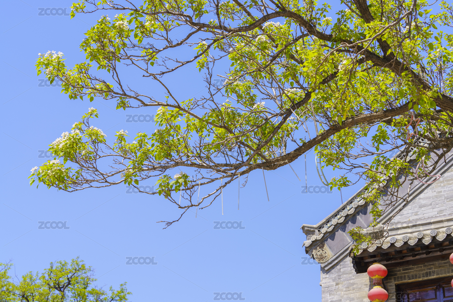 春天開花的古槐樹枝