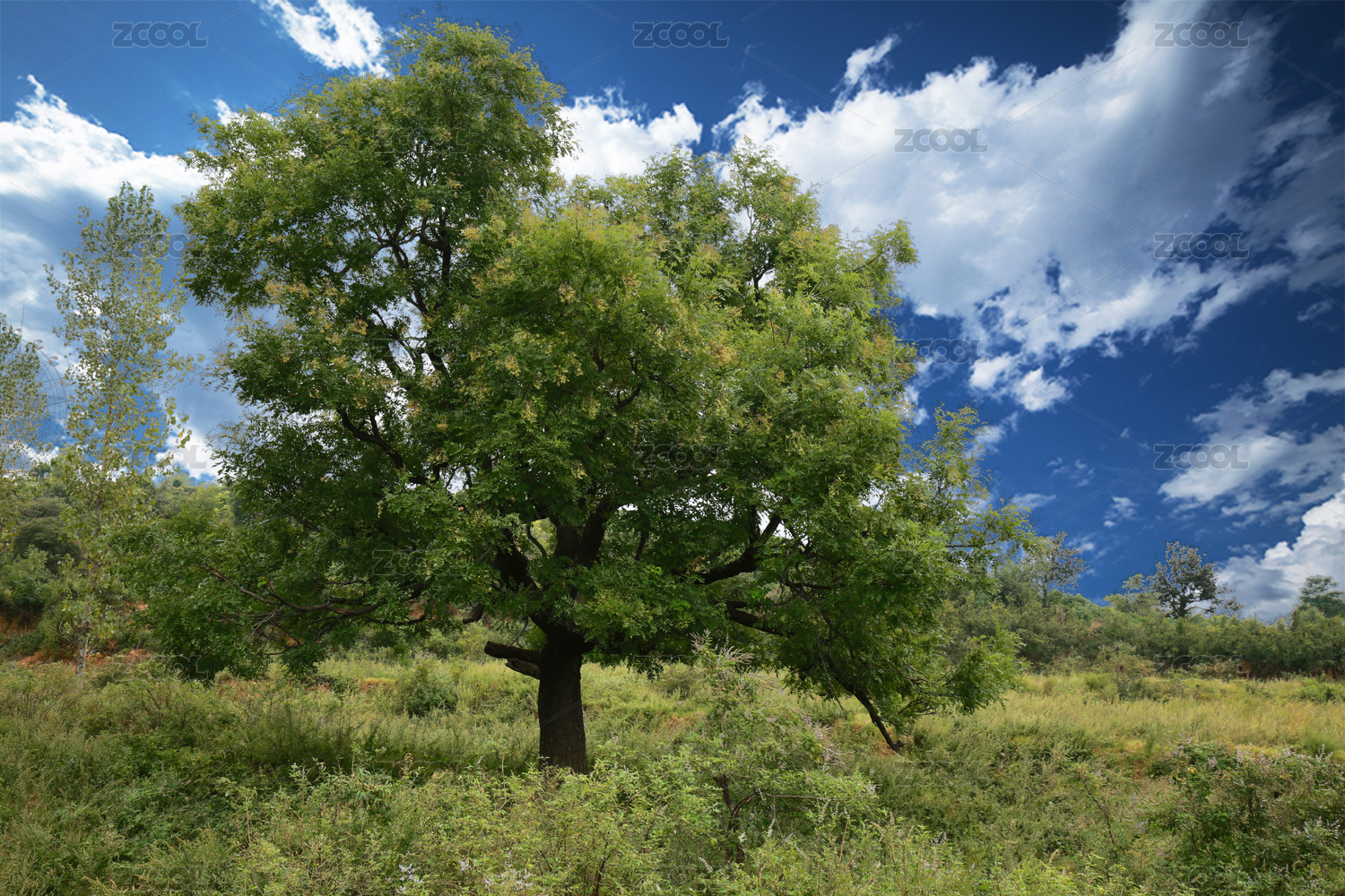 老槐樹綠葉樹枝