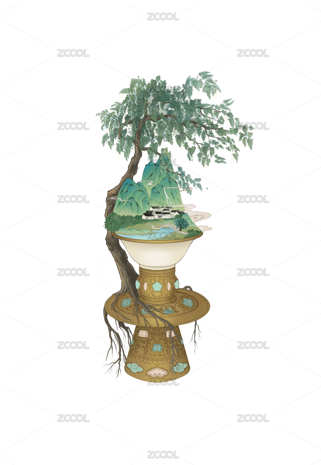 畫意古槐樹枝
