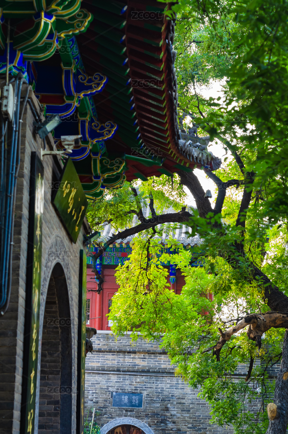 平遙雙林寺內(nèi)的古槐樹古建筑