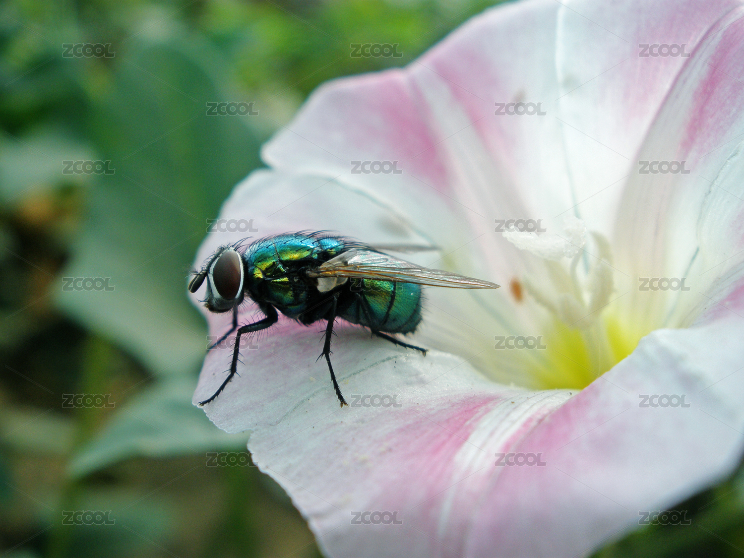 綠色背景小心葉薯白花