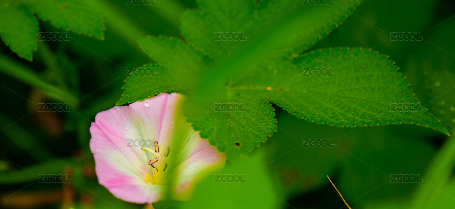 一朵藏在綠色草叢中的粉色田旋花