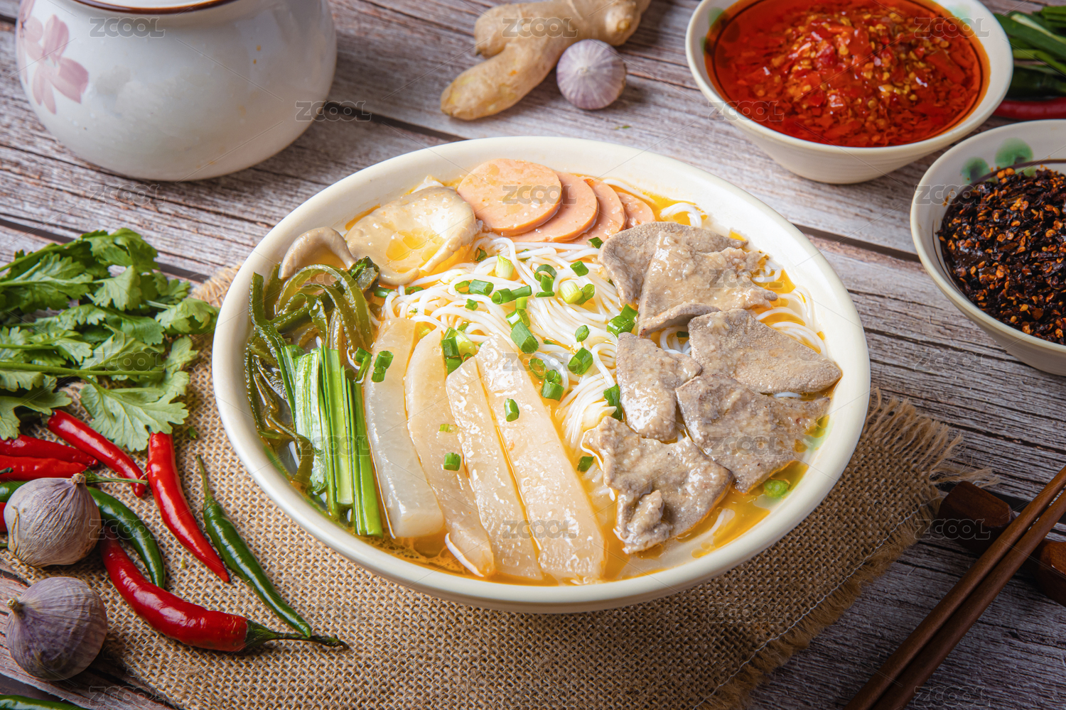 大碗里的四鮮米線泡椒豬肝米線米粉