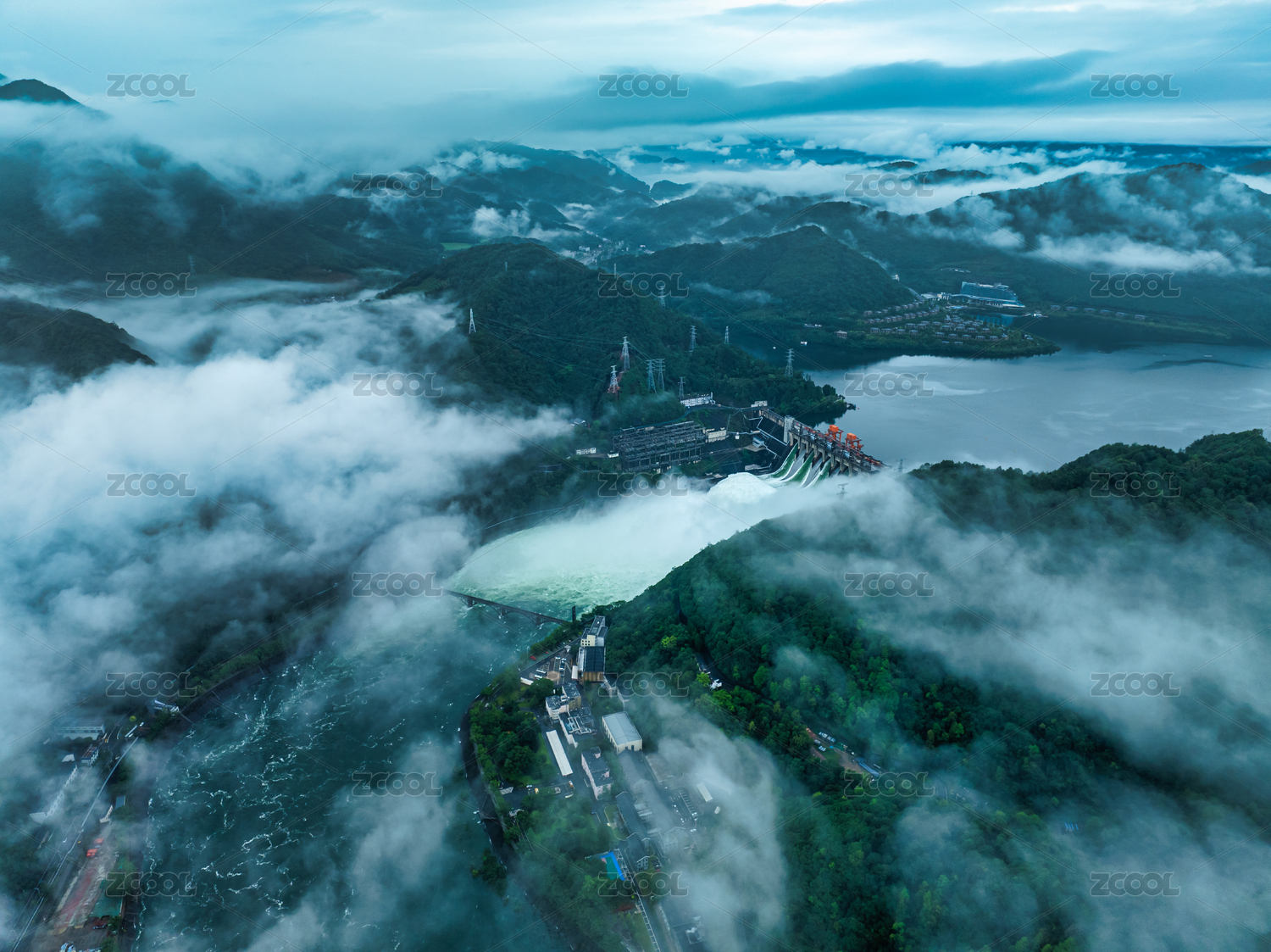 浙江新安江水庫(kù)七孔泄洪壯觀云海風(fēng)光航拍
