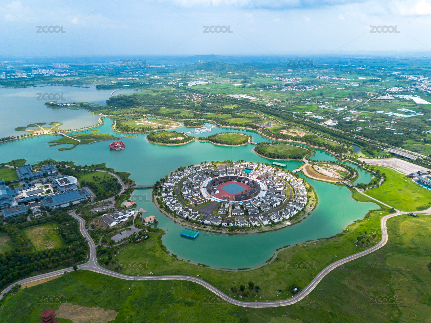 安徽省蚌埠湖上升明月景區(qū)古民居建筑群全景