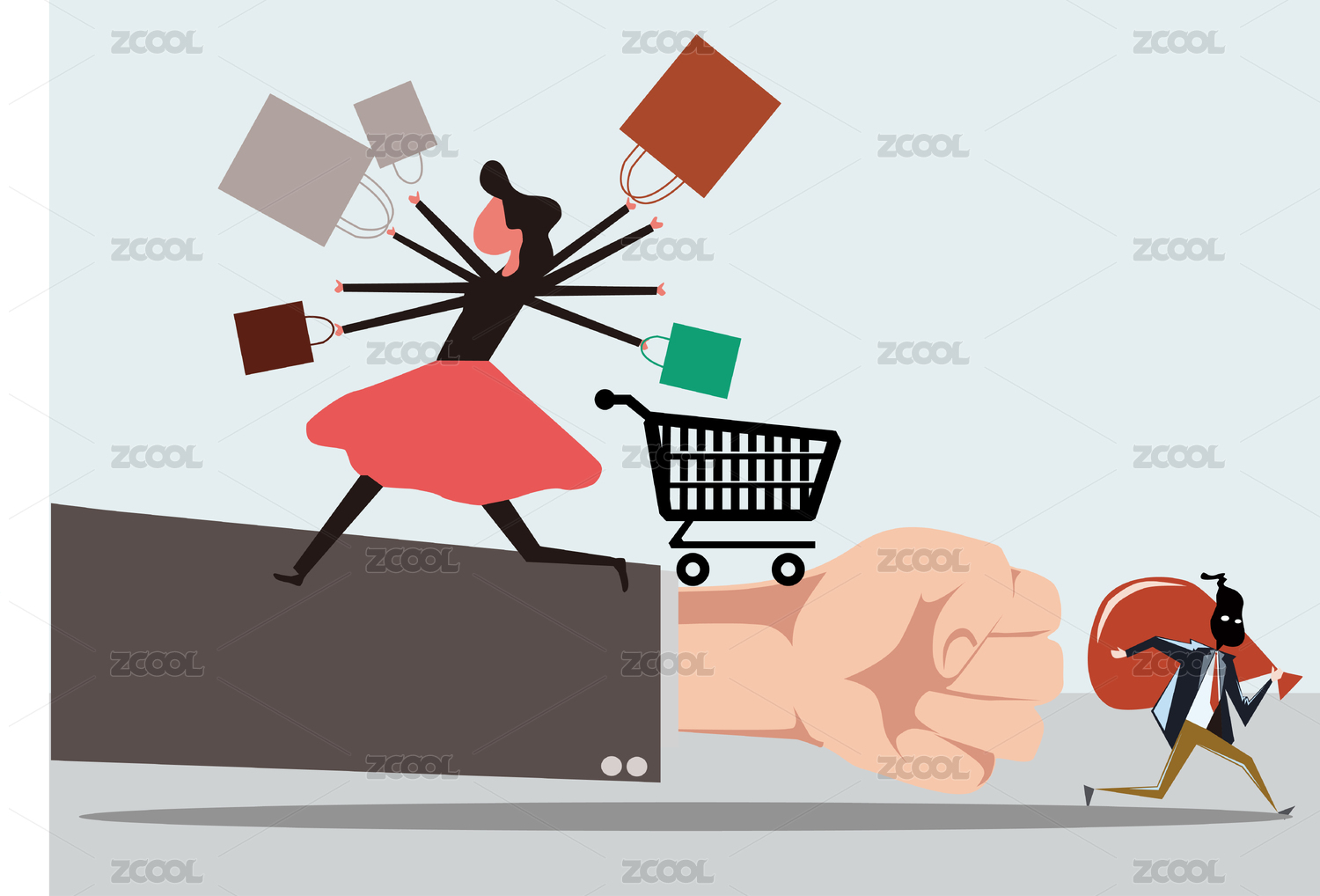 卡通手繪315消費(fèi)者日維權(quán)抵制假貨插畫