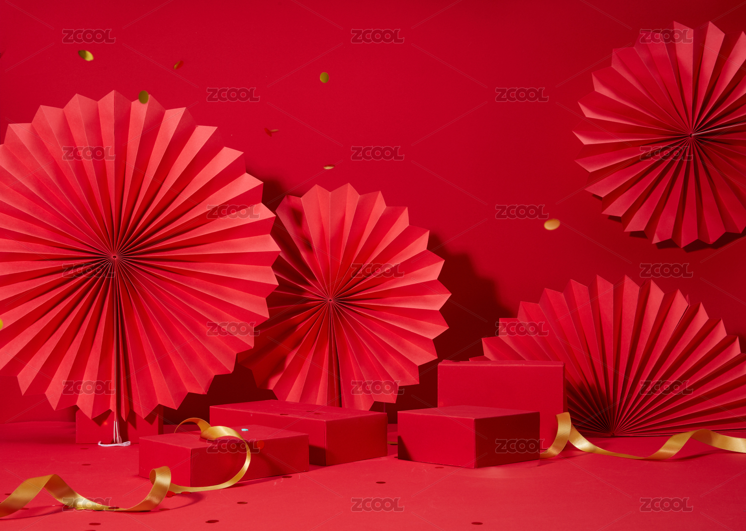 紅色節(jié)日氛圍紙扇禮盒場景