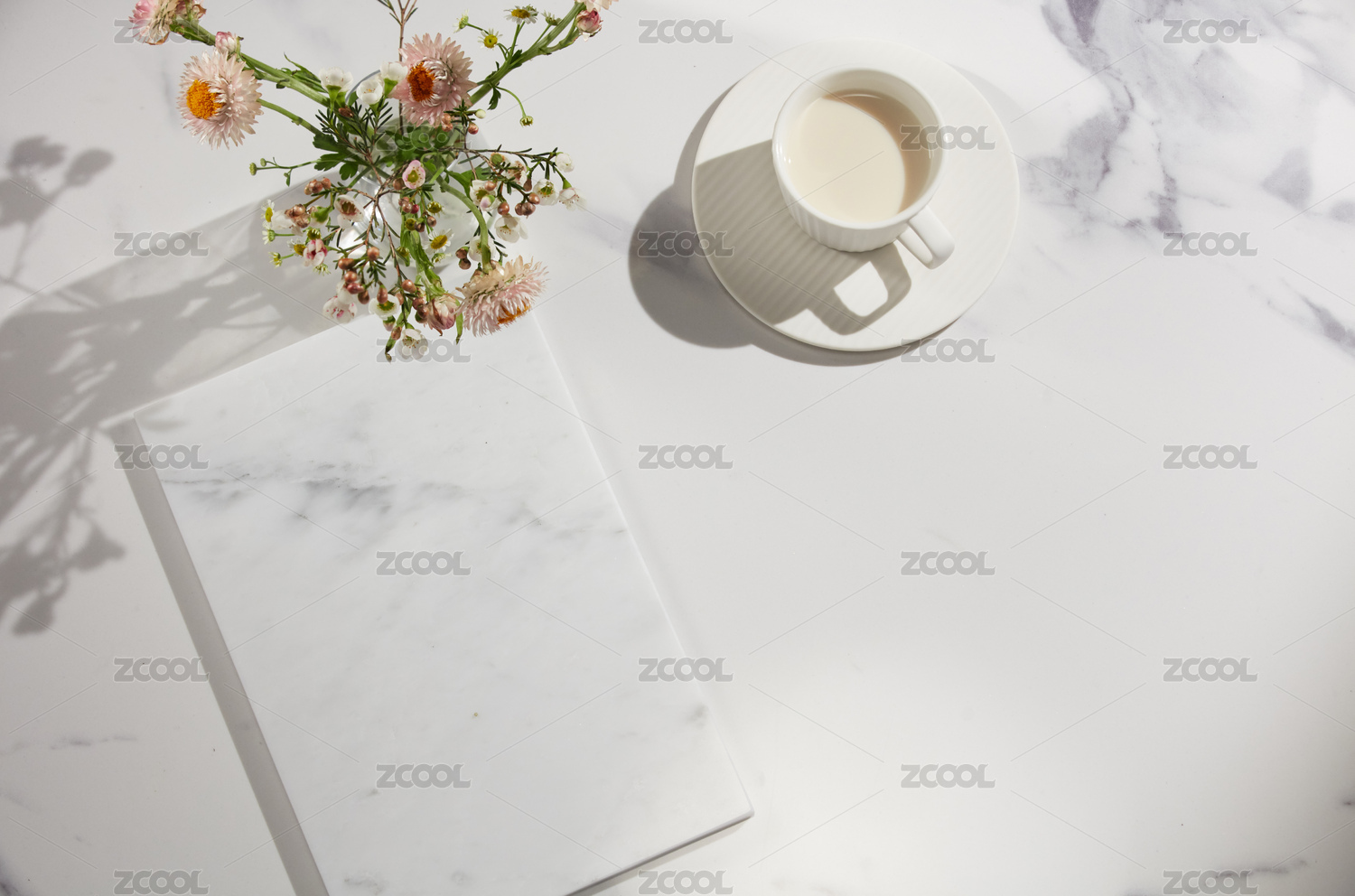 放有鮮花的大理石桌面
