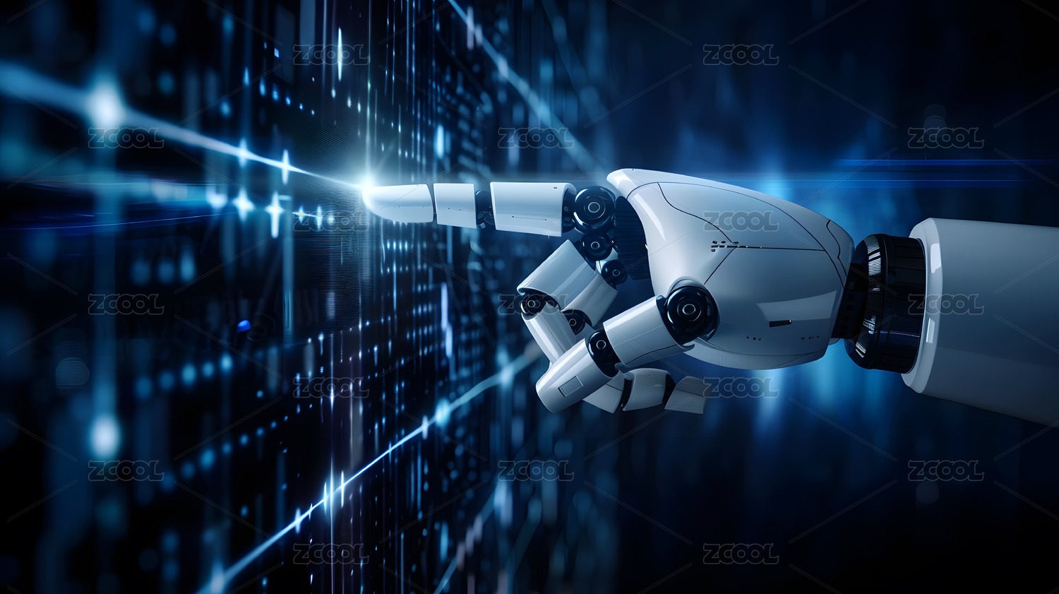 未來科技機器手臂進行數據傳輸概念場景