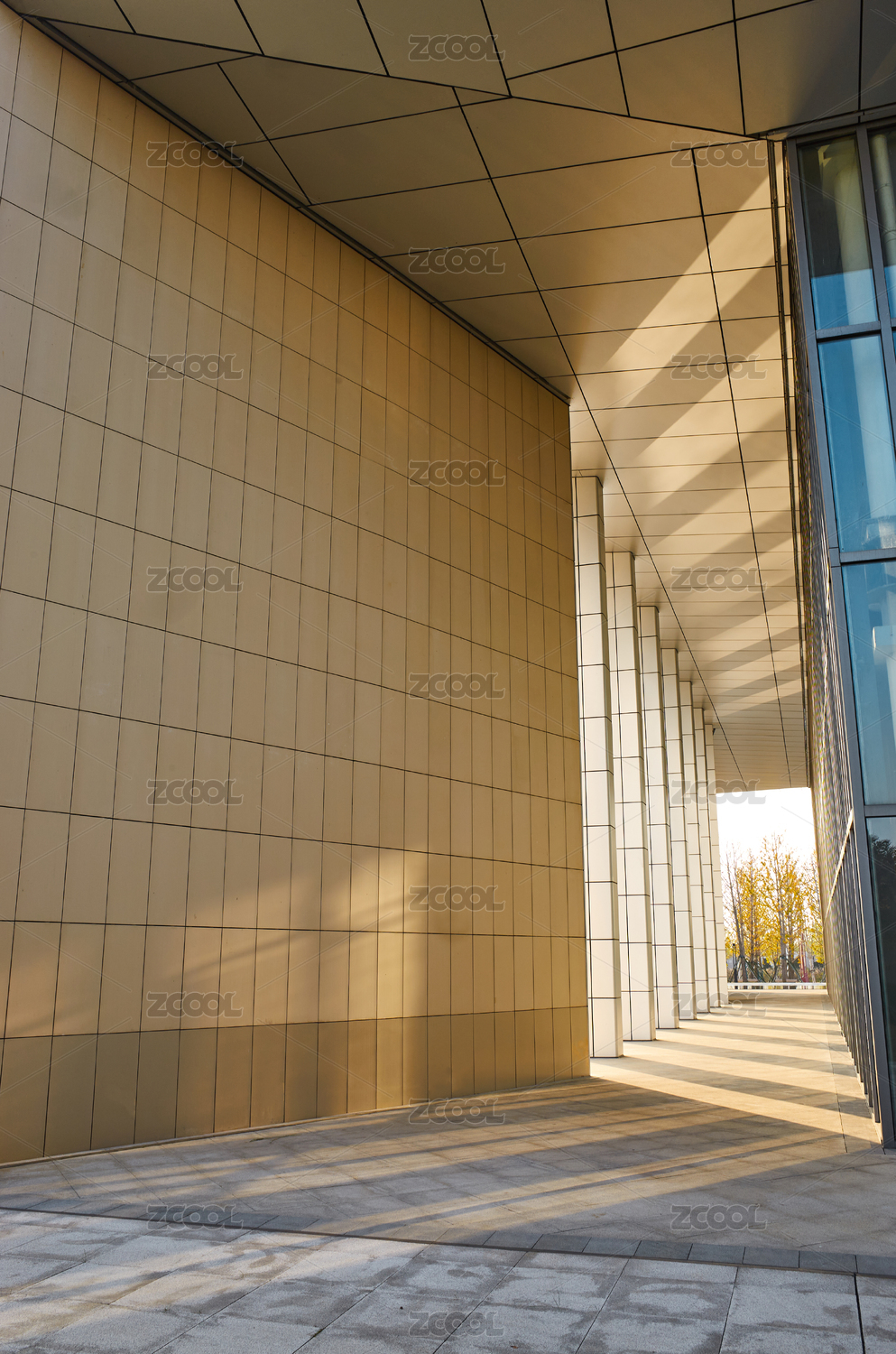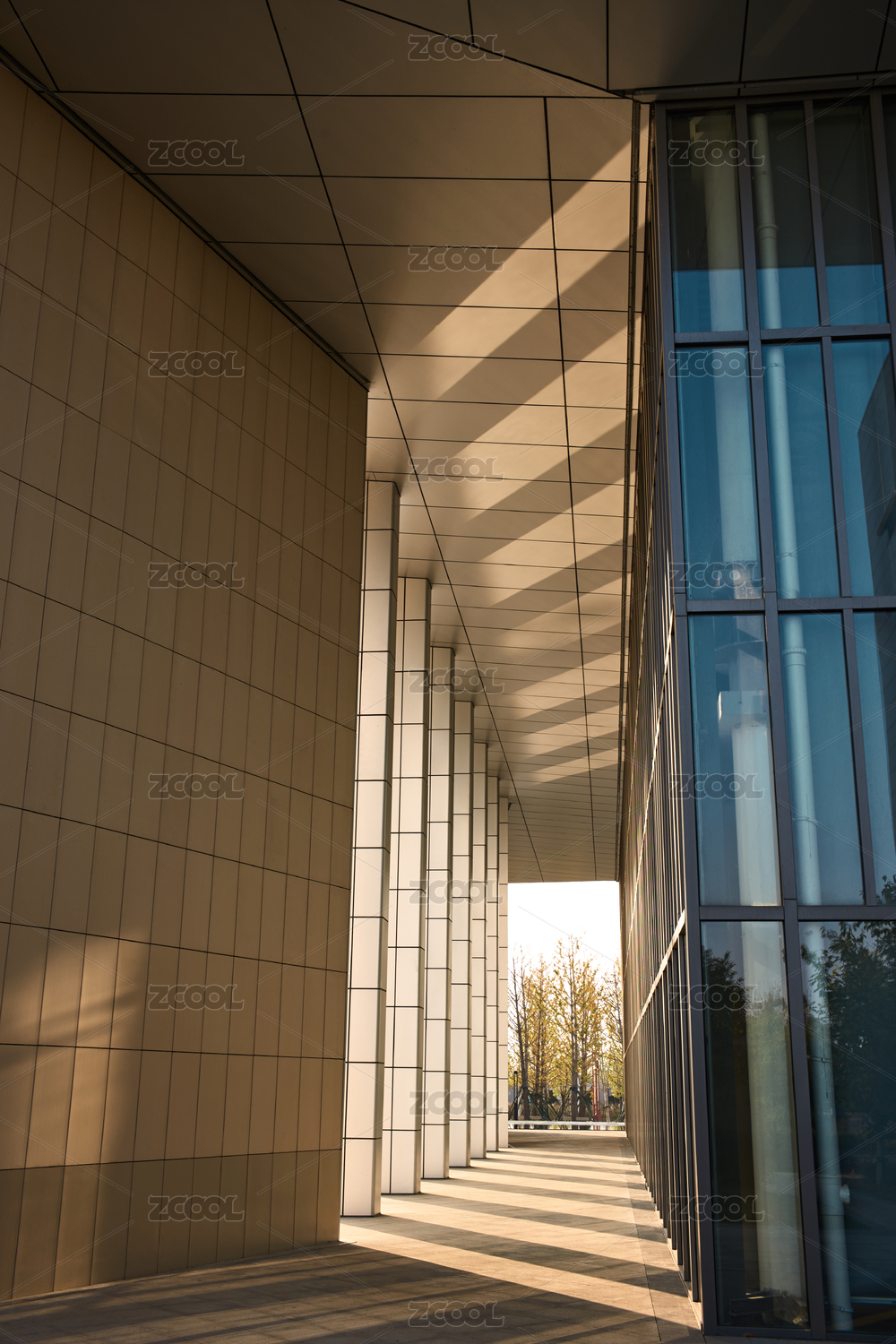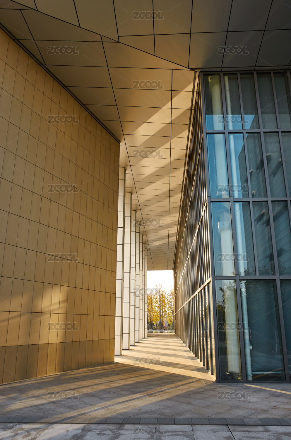 深秋溫暖斜陽中的新洲城市規(guī)劃館建筑特寫