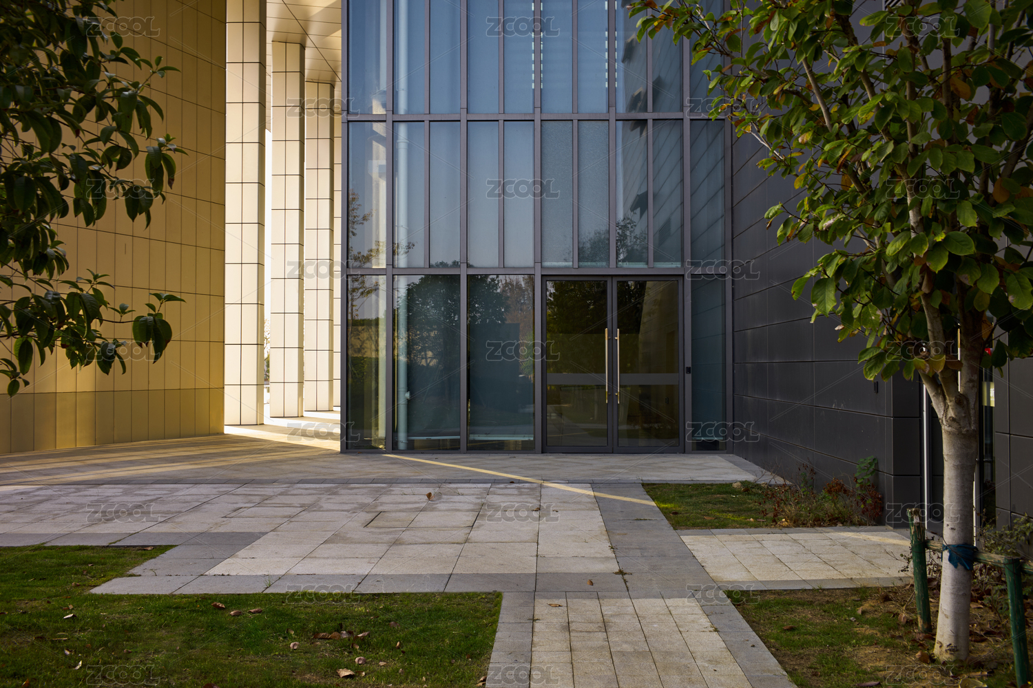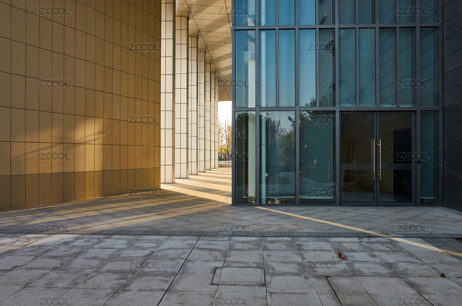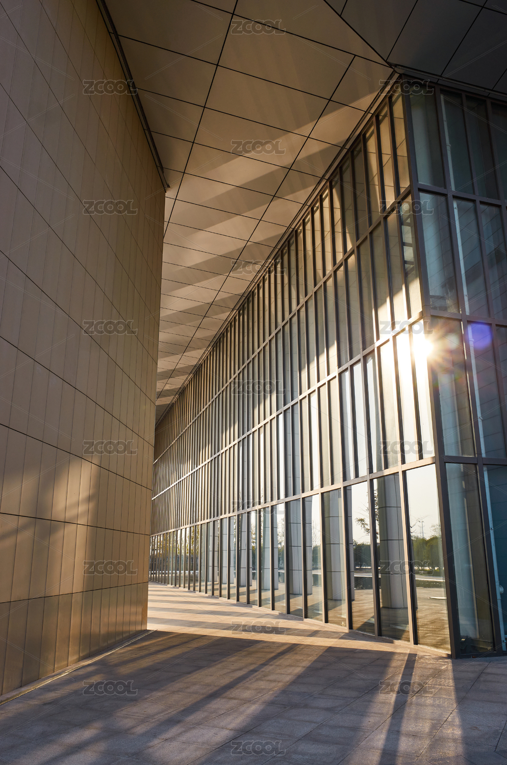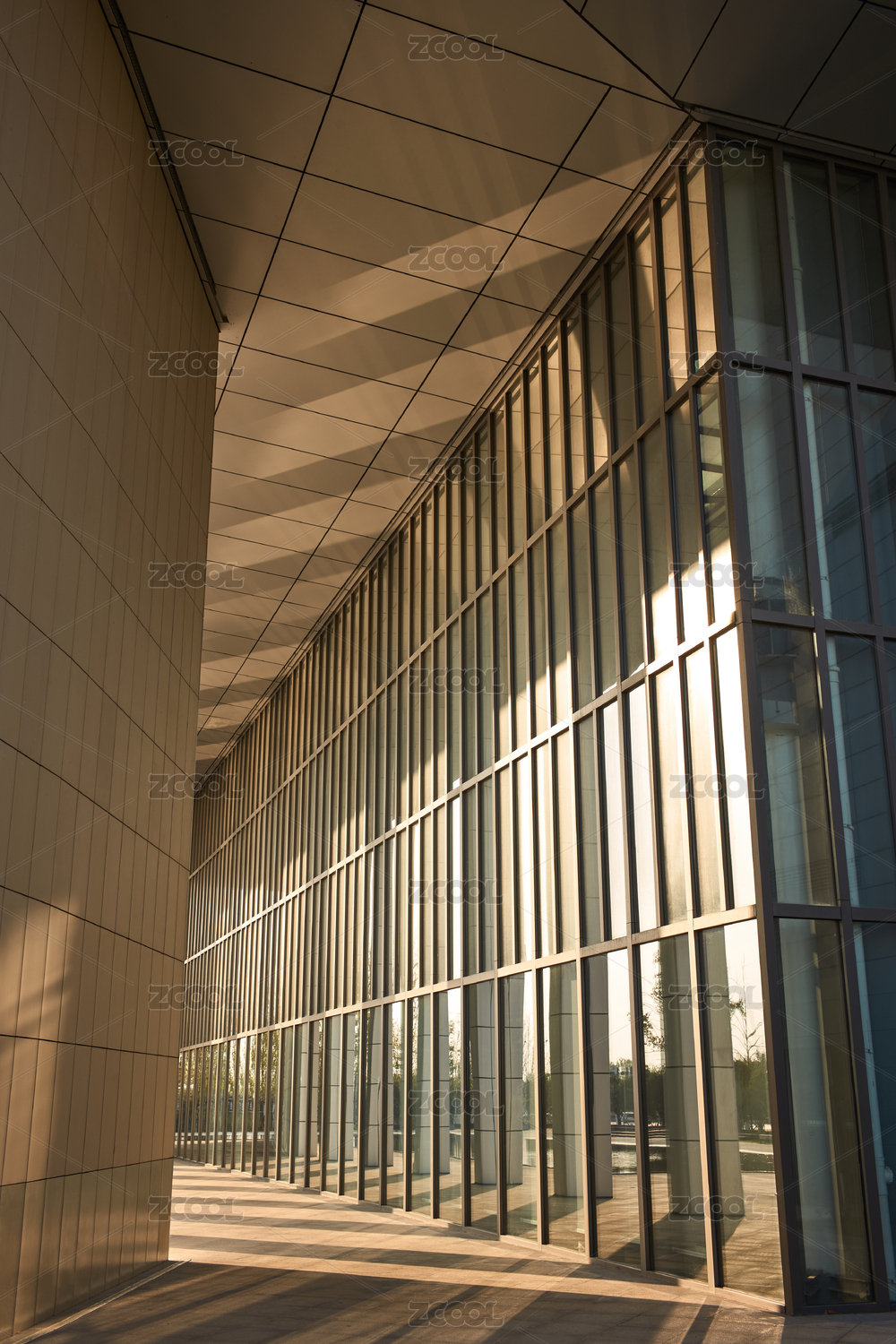 深秋溫暖斜陽中的新洲城市規(guī)劃館建筑特寫
