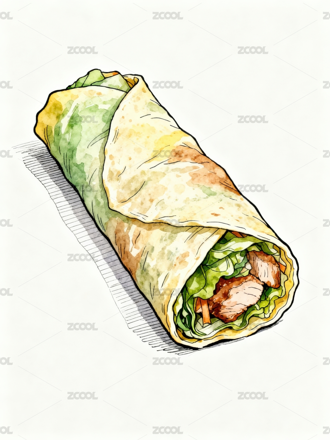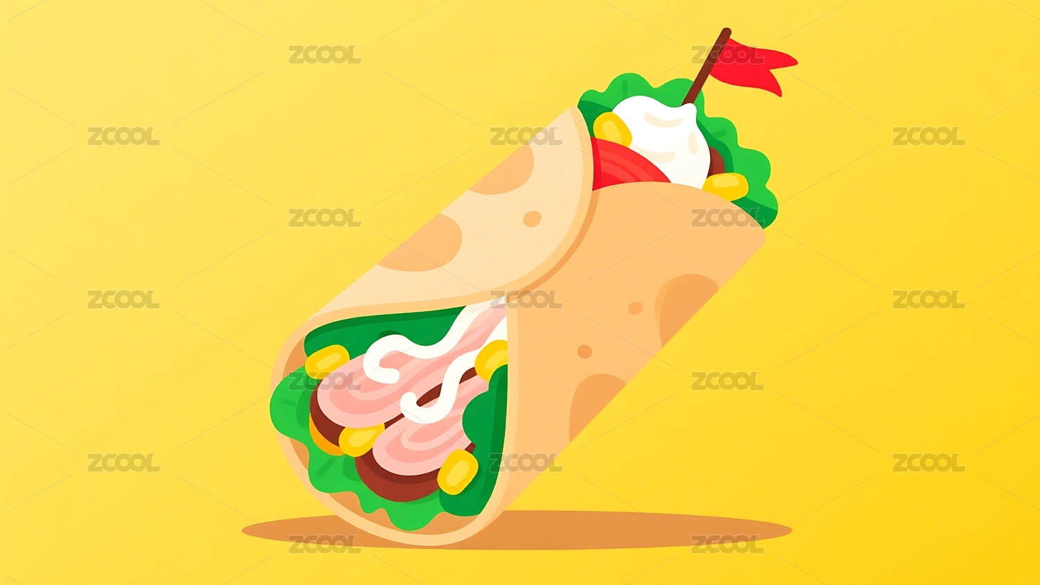 卡通手繪餐飲美食雞肉卷插畫(huà)