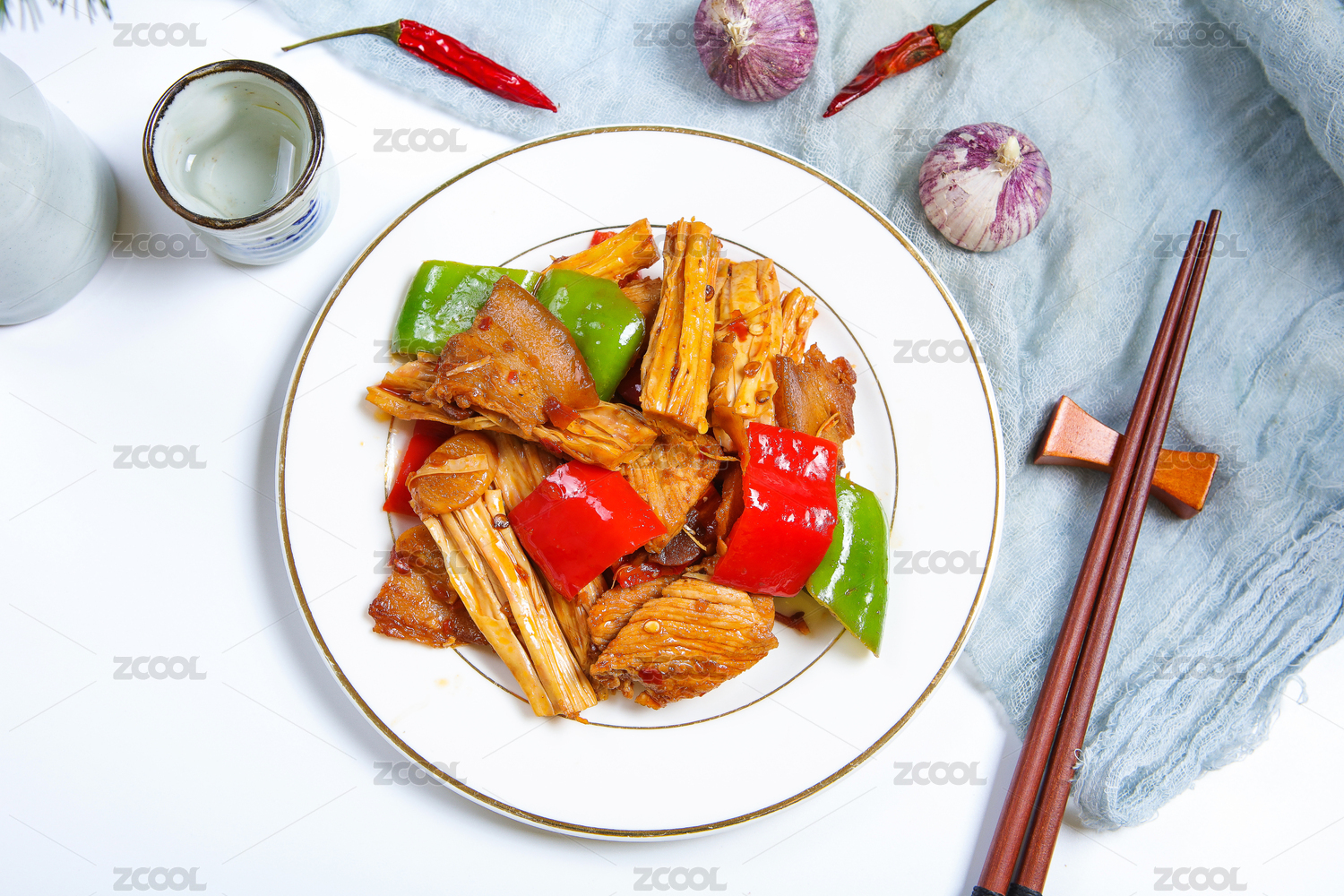 木桌背景傳統(tǒng)客家美食腐竹炒肉