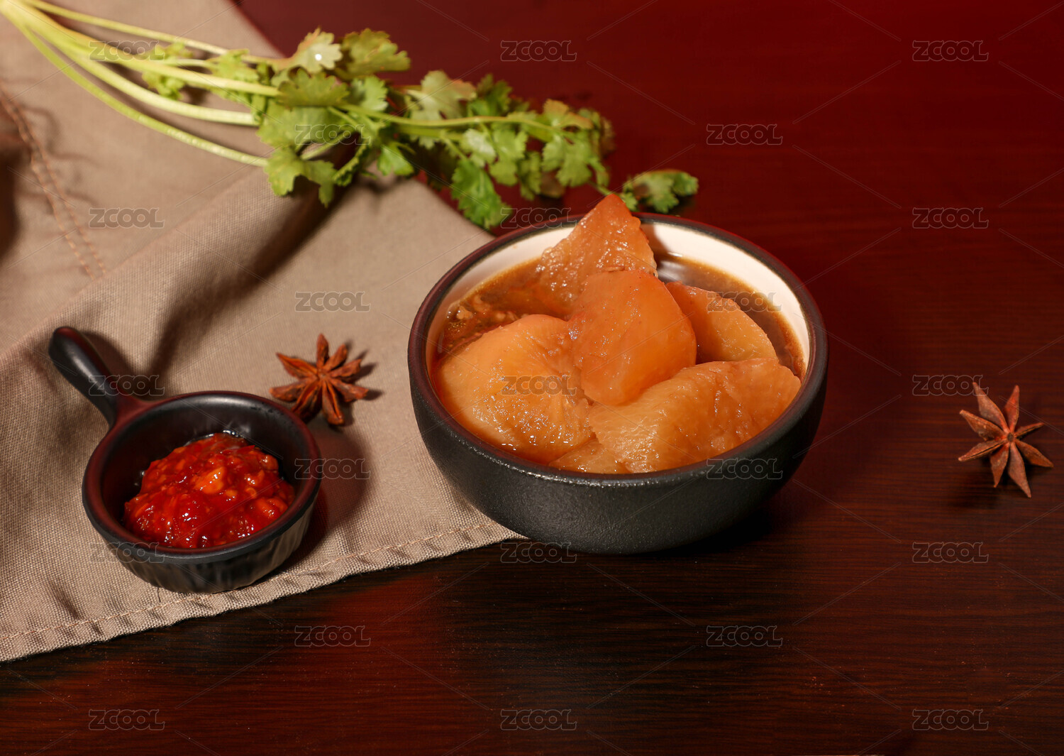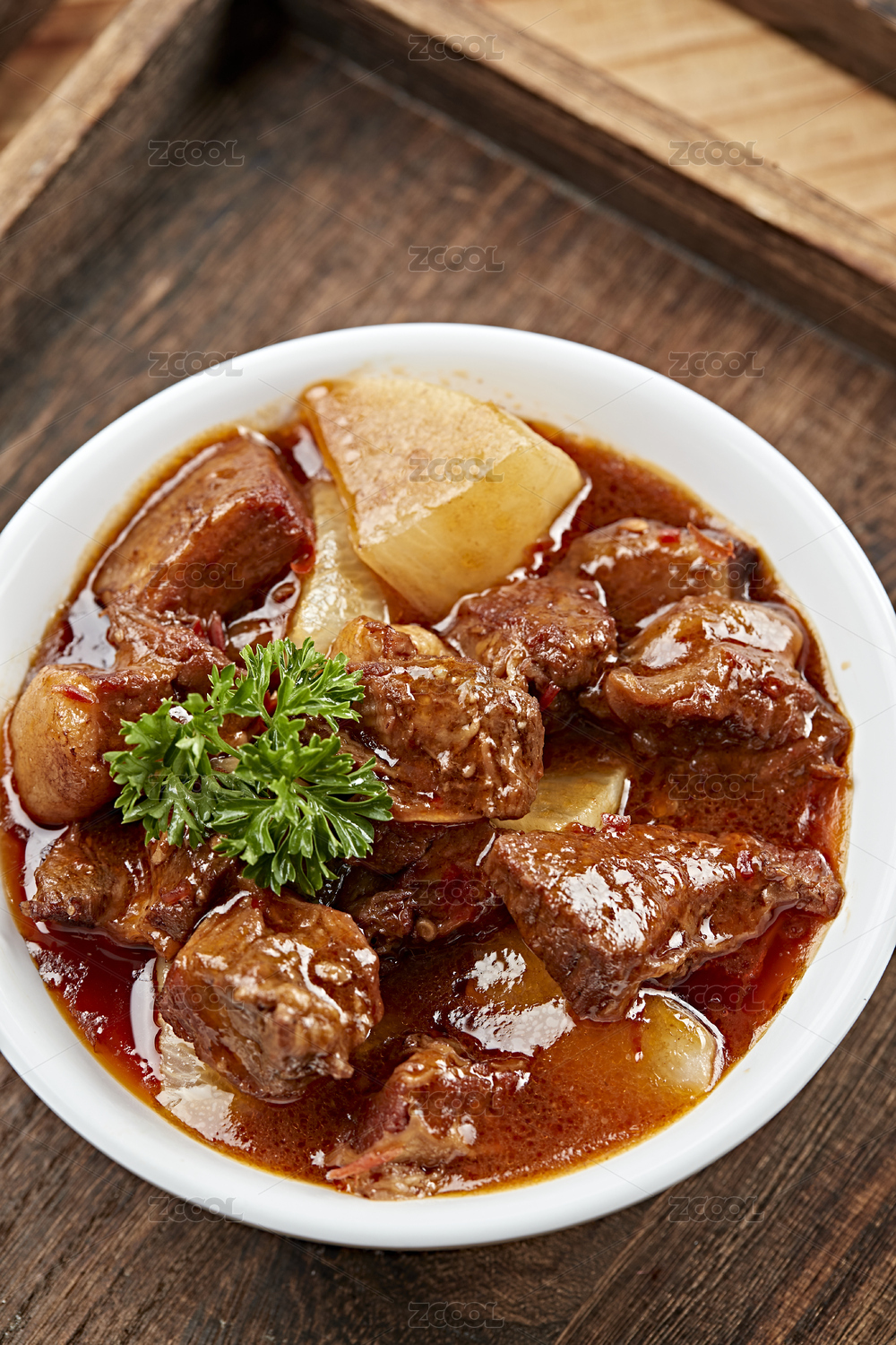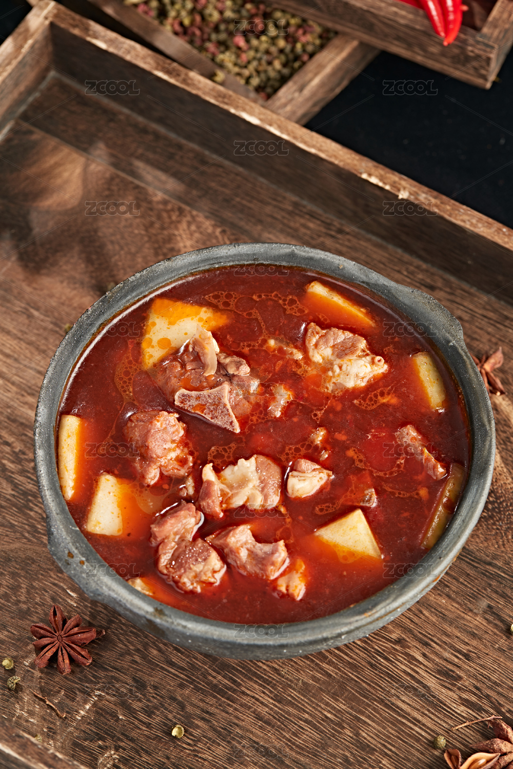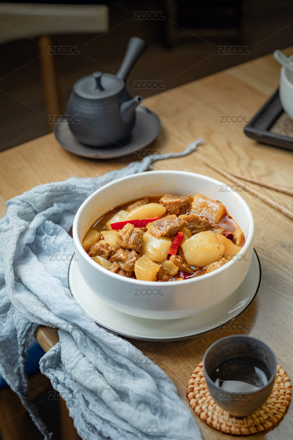 餐桌上碗里的辣椒牛腩燉蘿卜