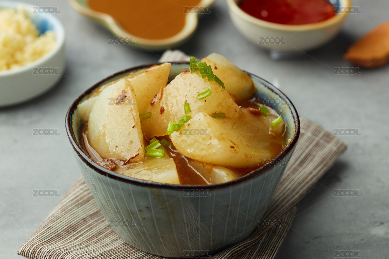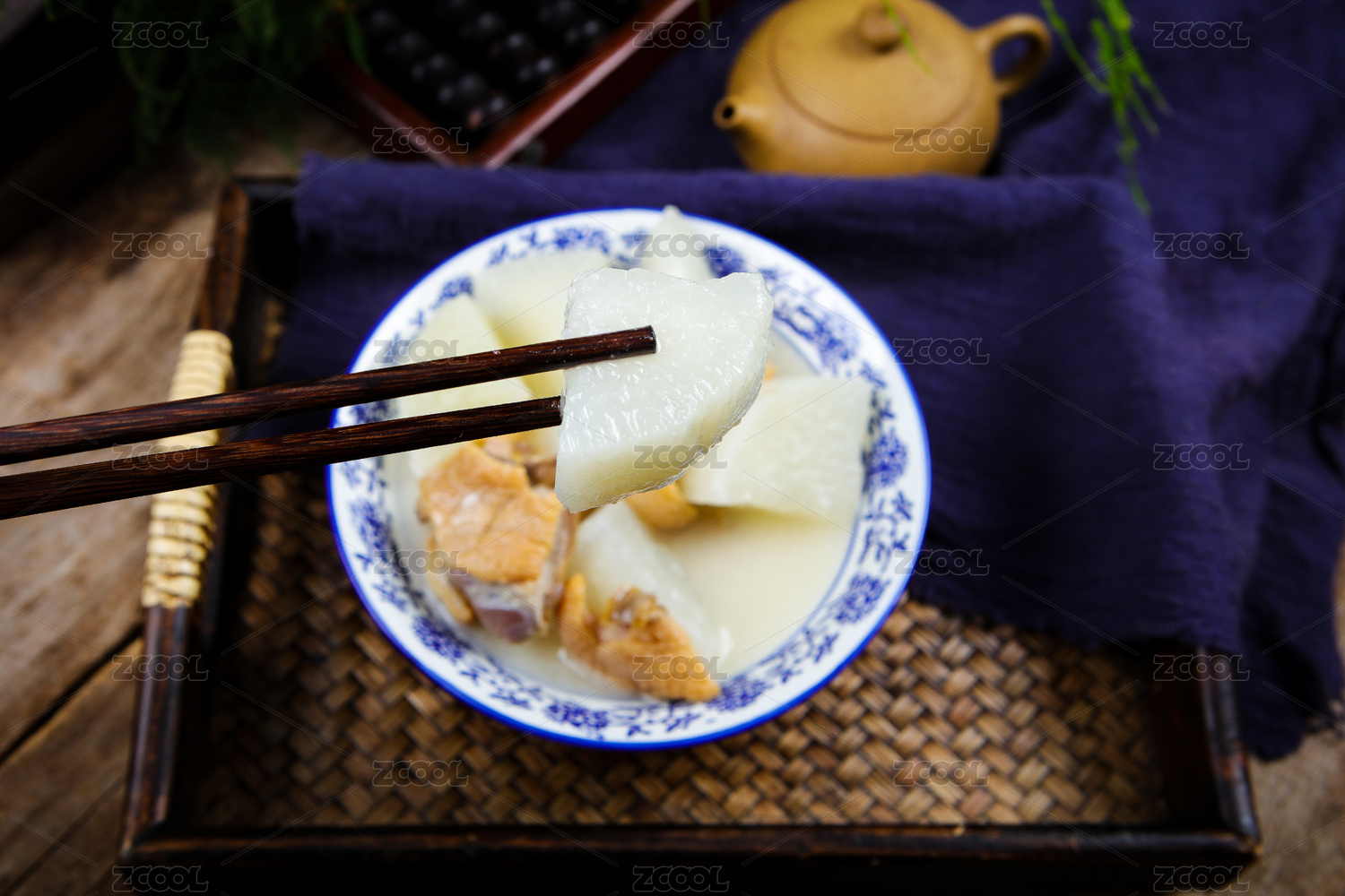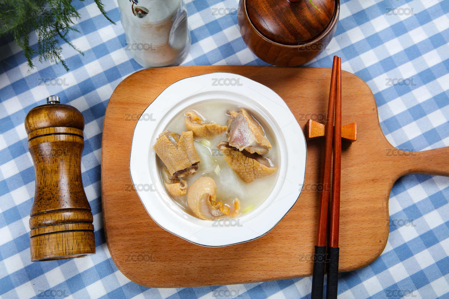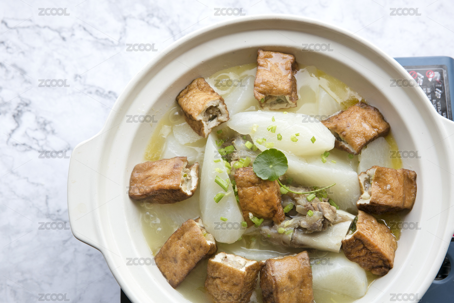 裝在圓形大碗里的肉骨燉蘿卜豆腐湯