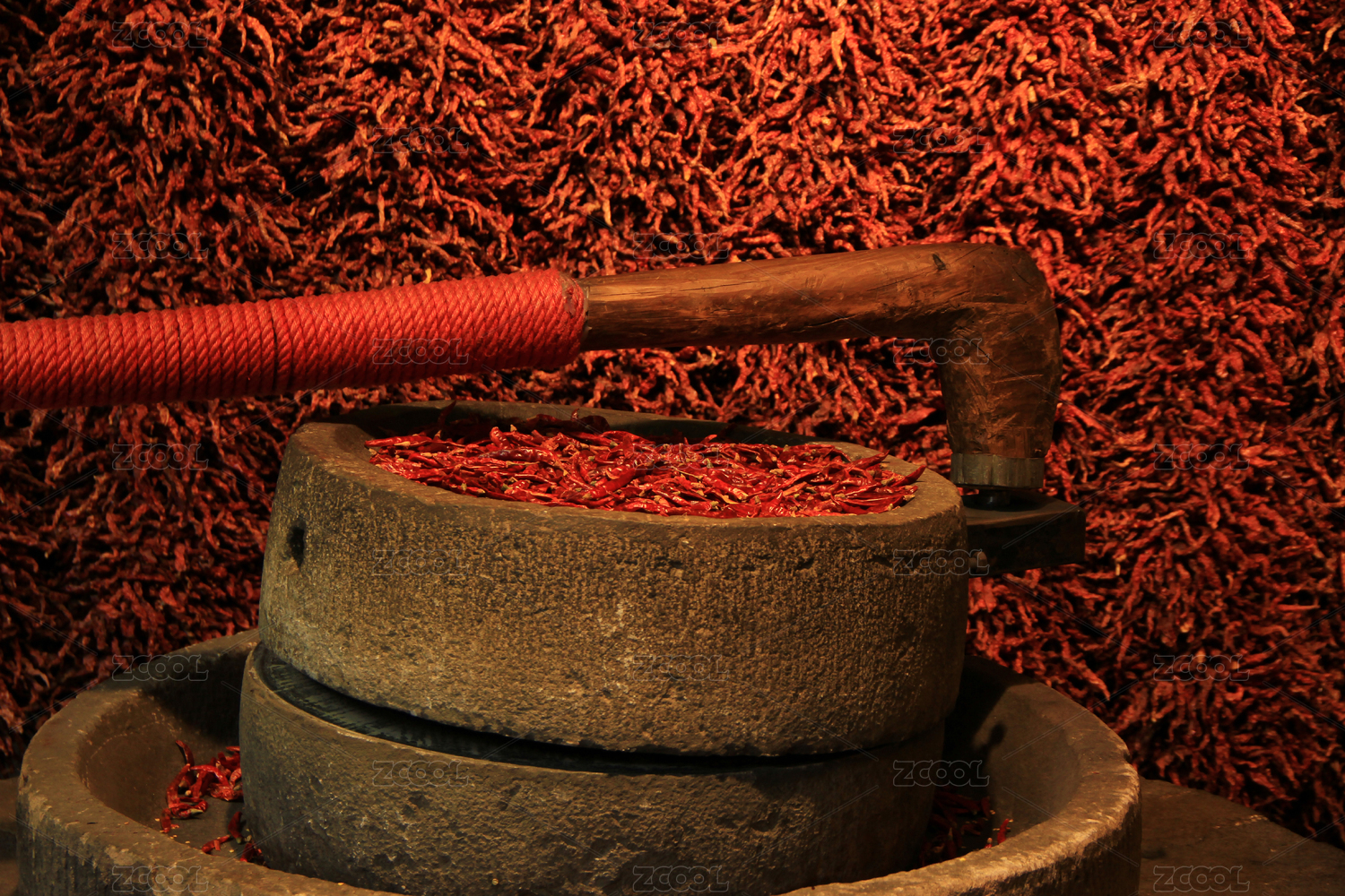 石磨土法自制辣椒粉