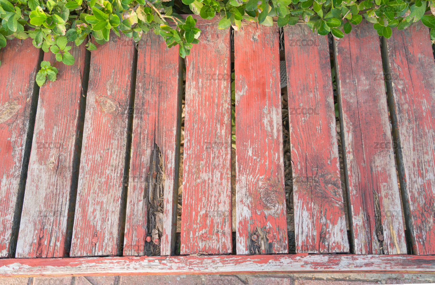 城市公園里陳舊的長椅特寫