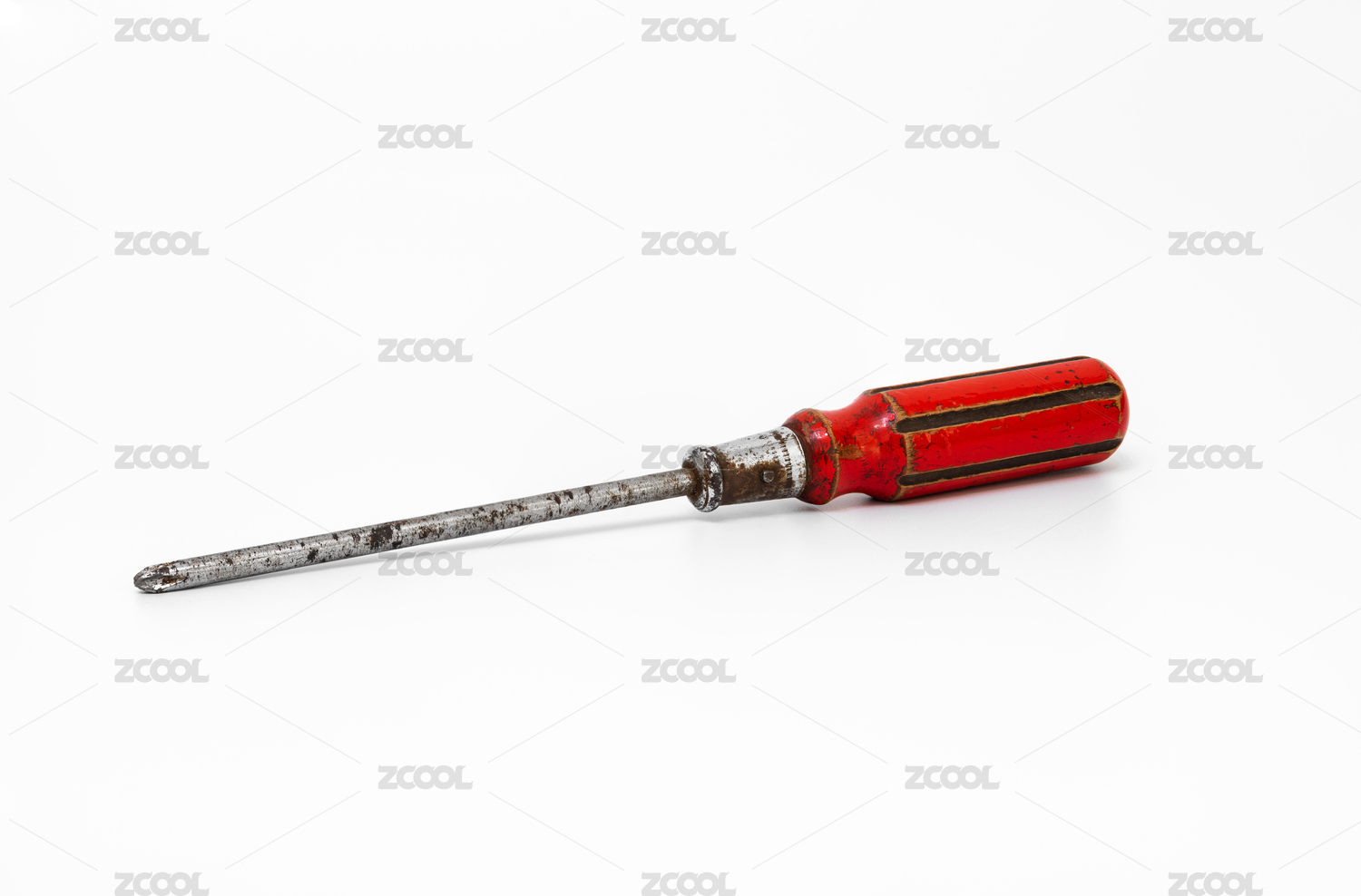 白底上一把陳舊的紅色梅花螺絲刀