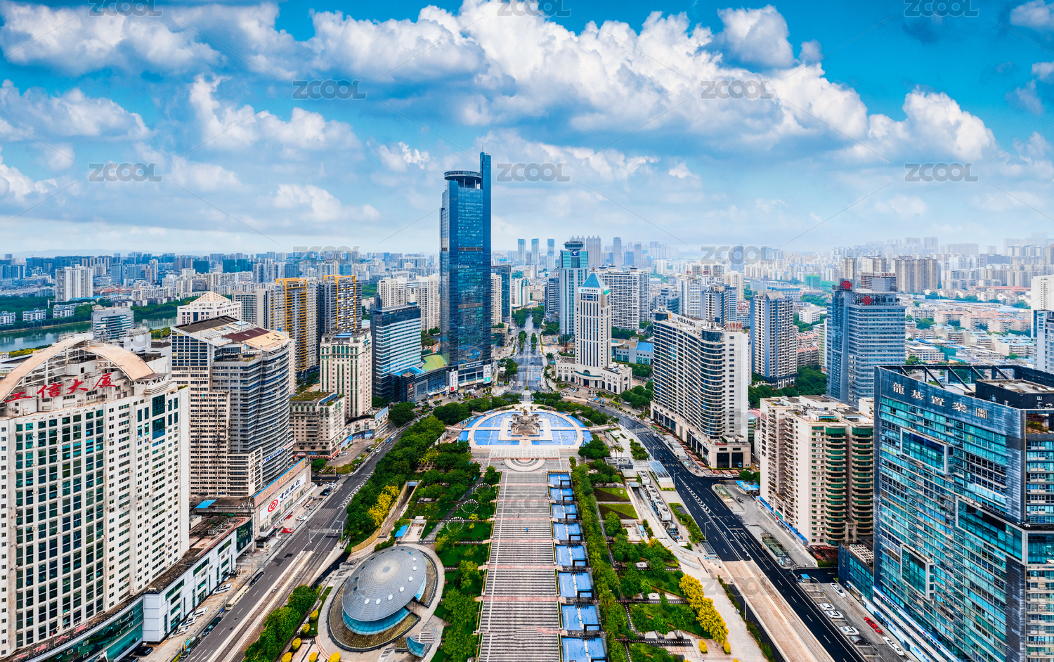 南寧金湖廣場五象雕塑與城市高樓建筑