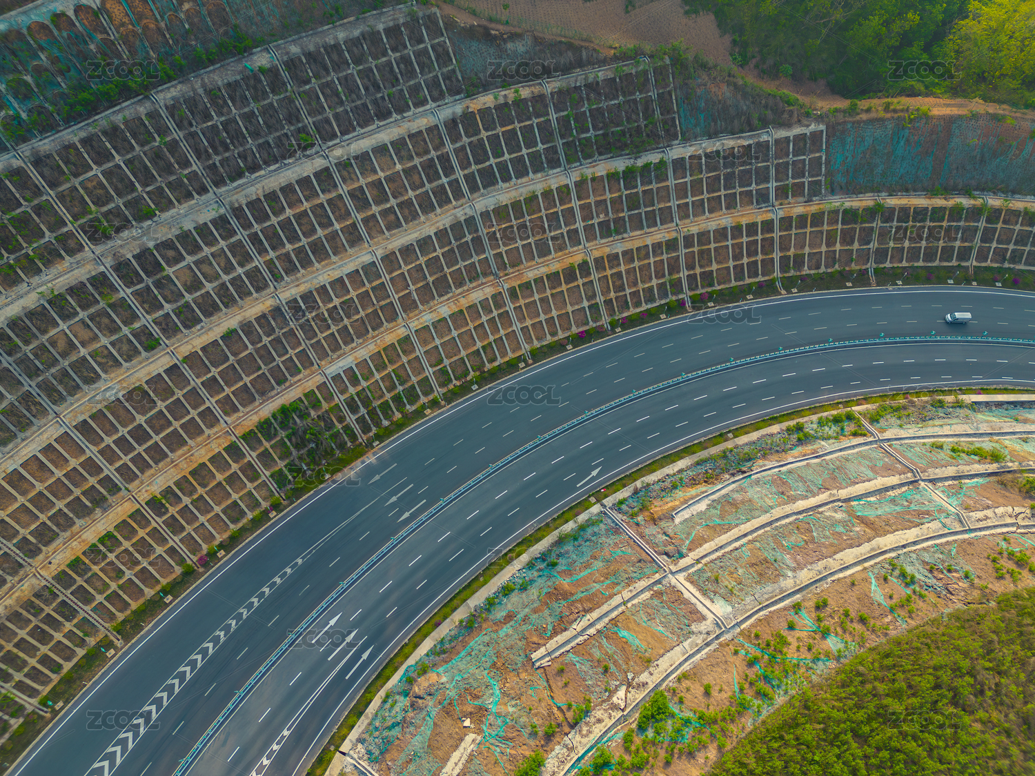 高架橋上俯拍高架橋出口下坡匝道