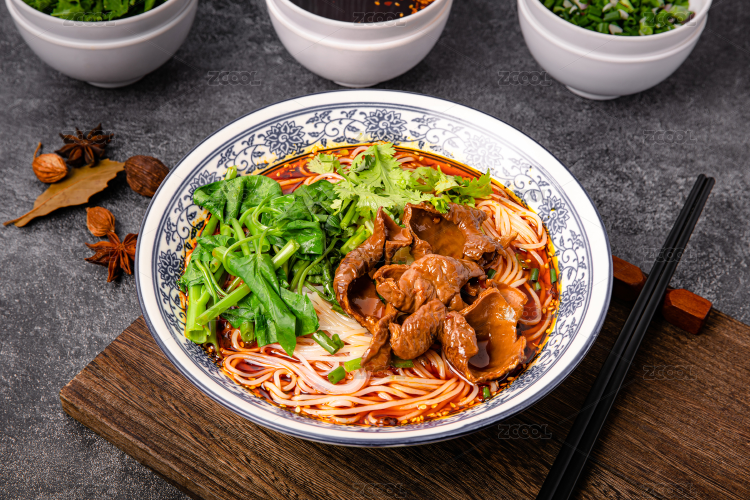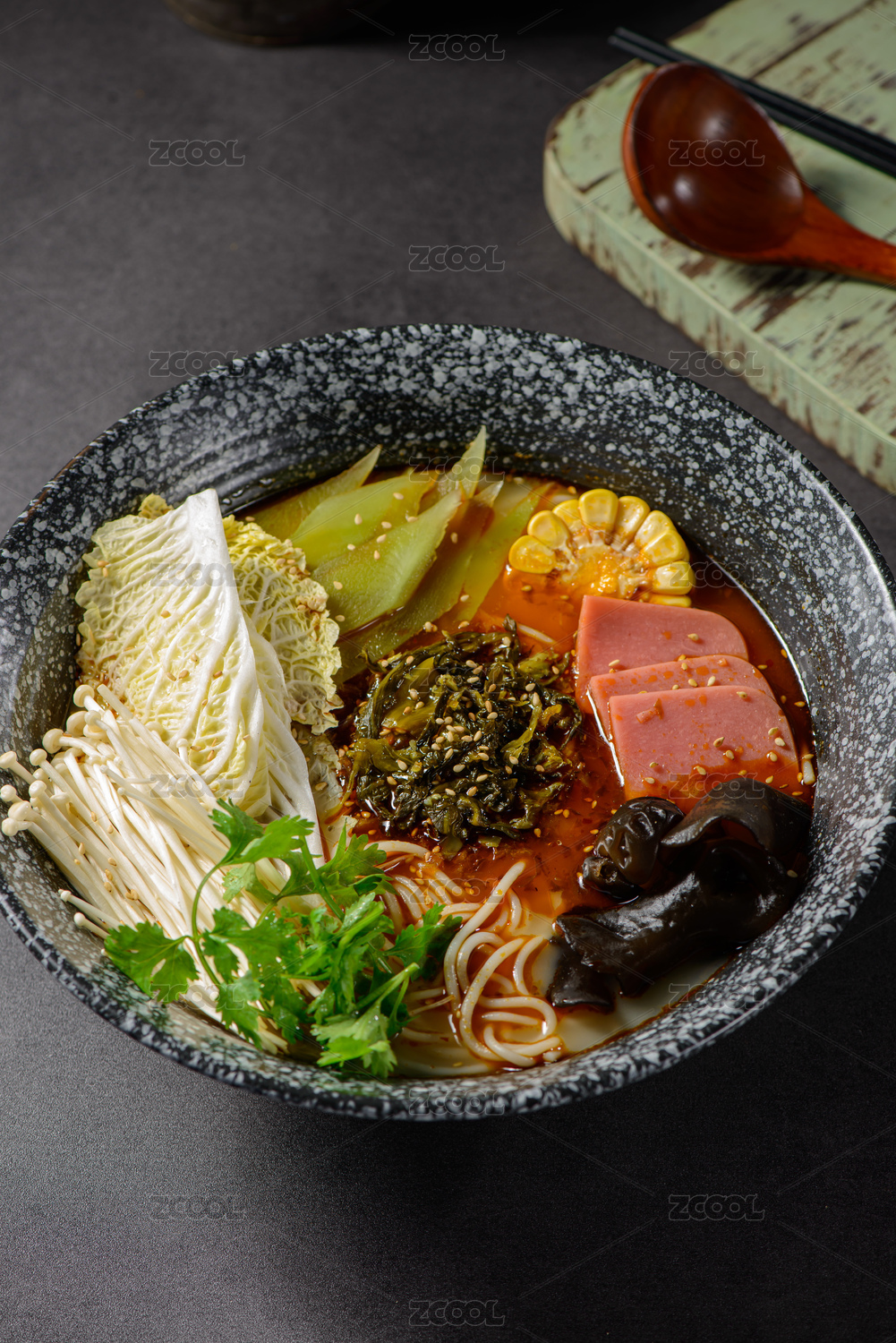 復(fù)古背景上碗里的麻辣米線酸辣粉