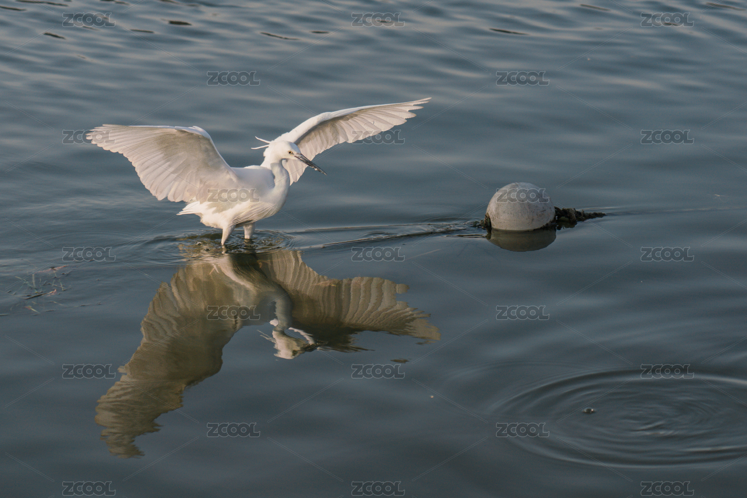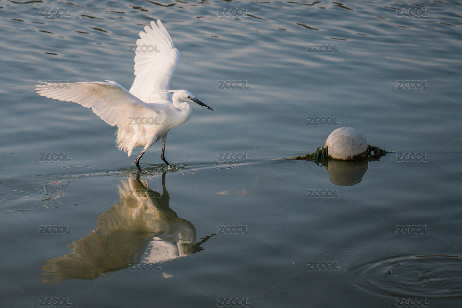 叢林水塘上展翅飛翔的白鷺