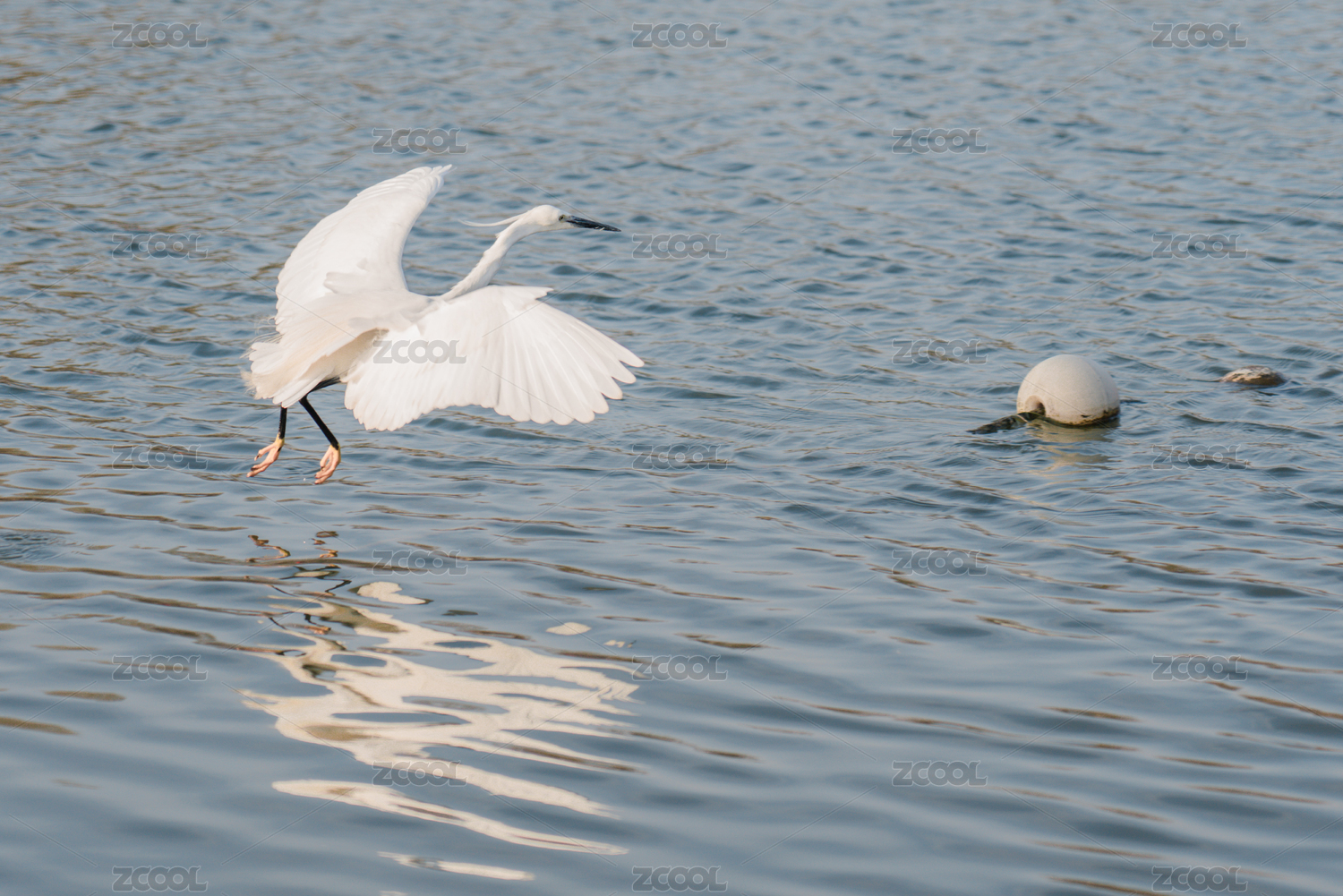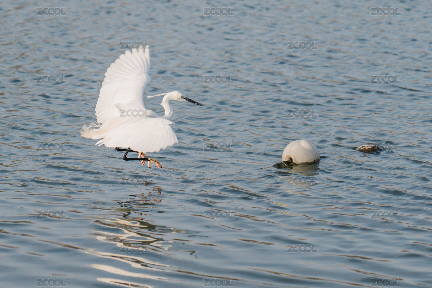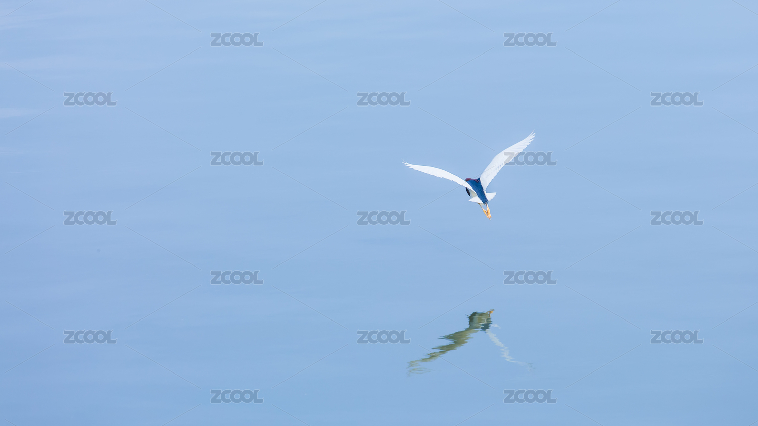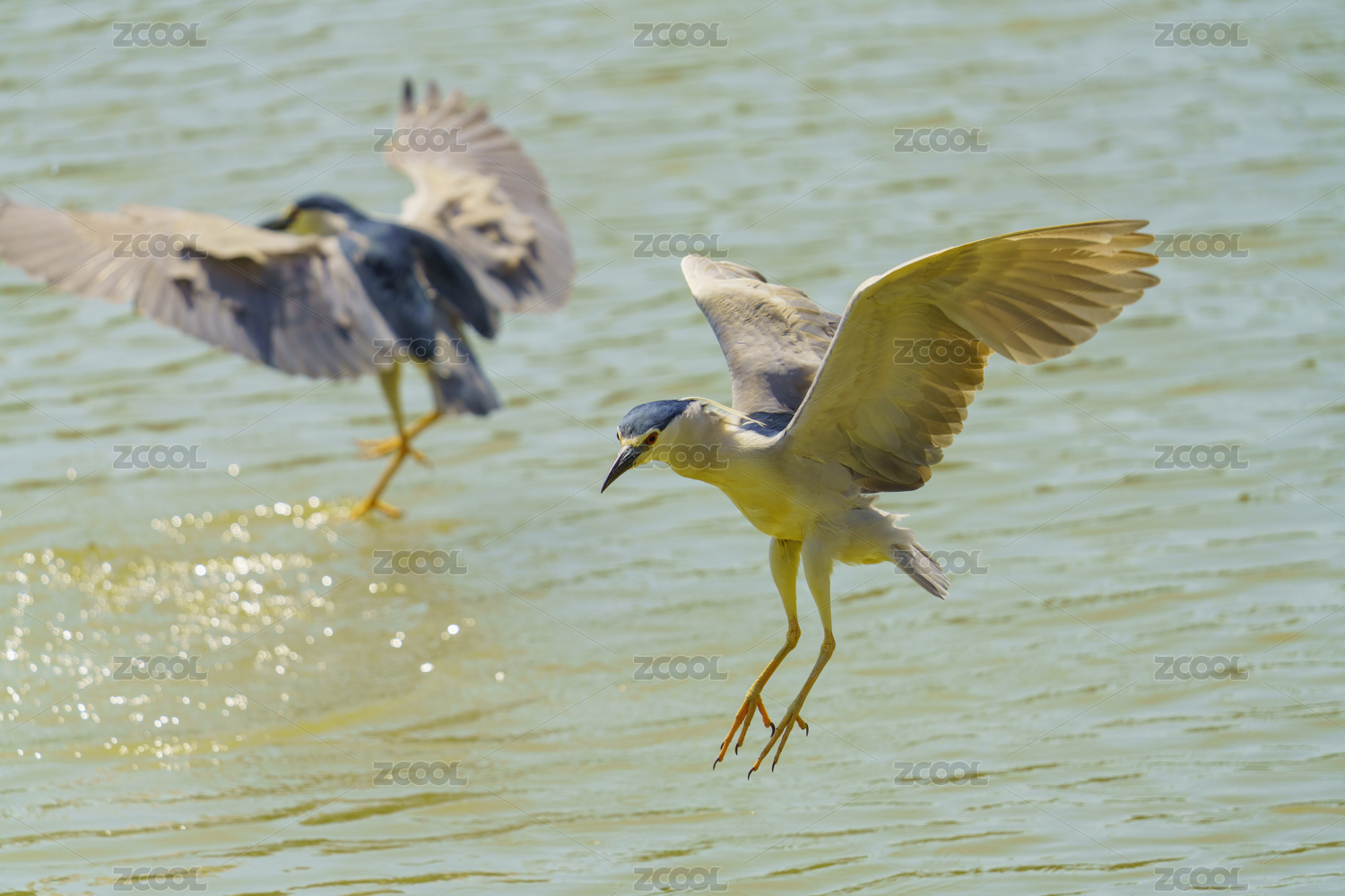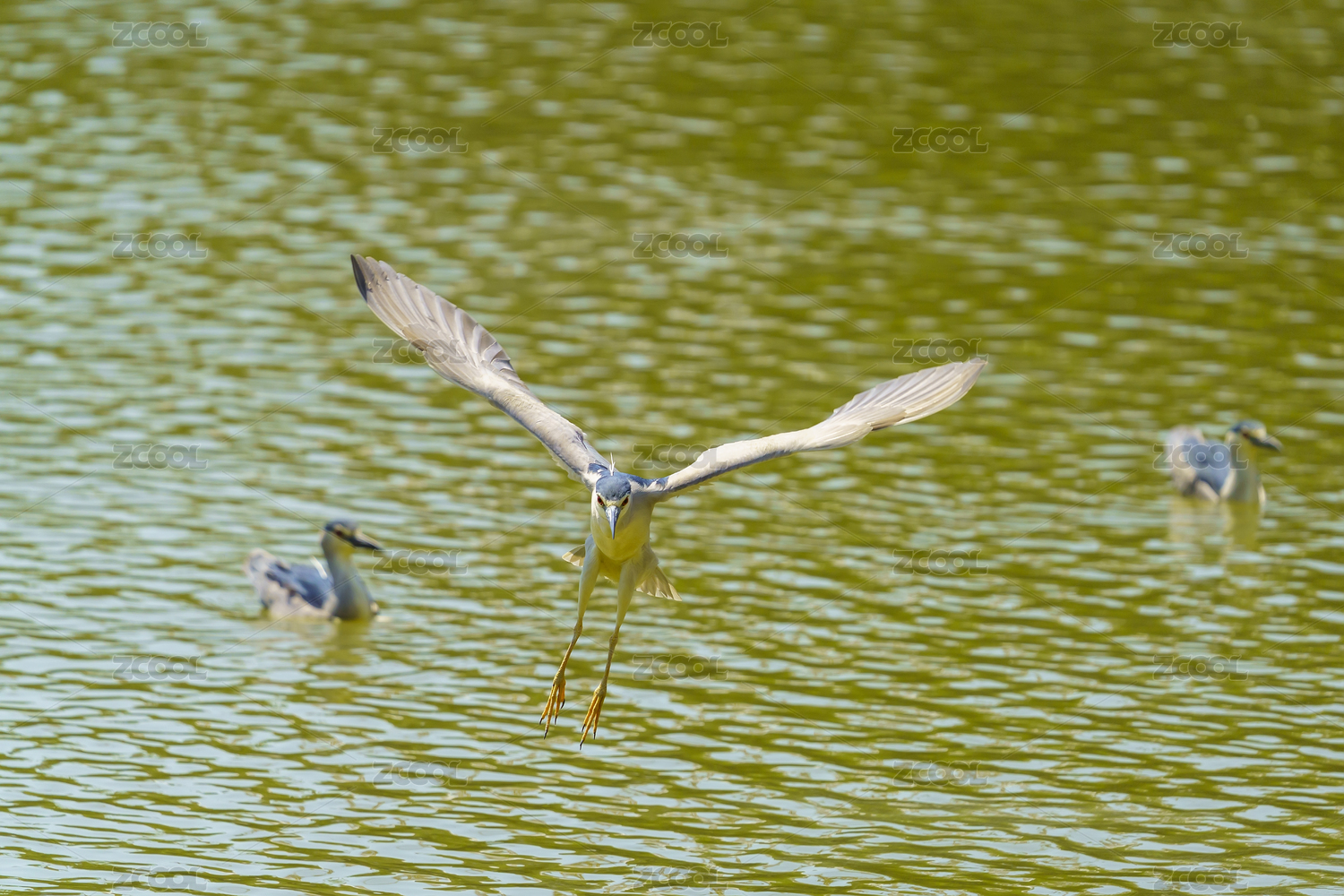 夜鷺在水面上展翅飛翔