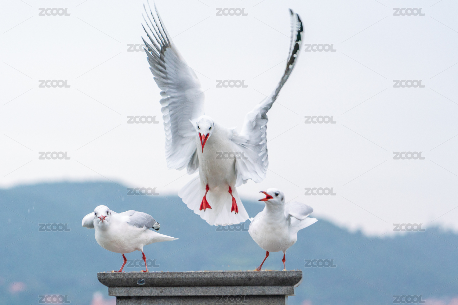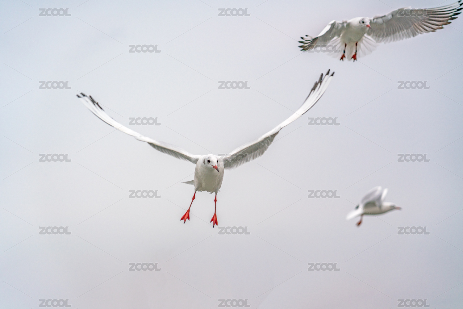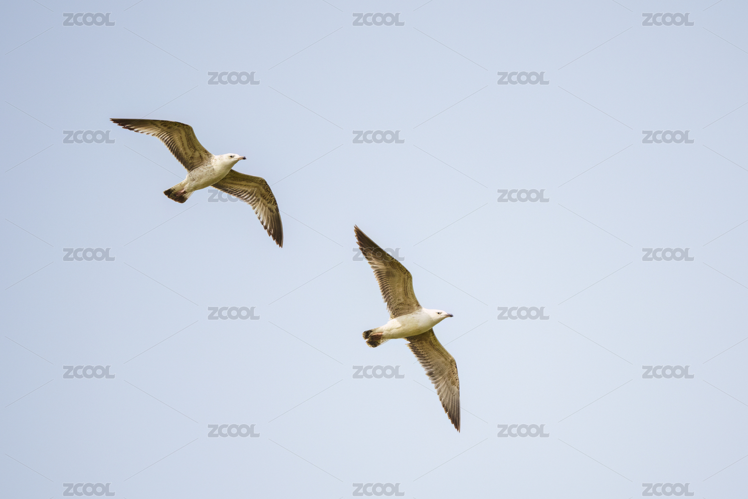 兩只展翅飛翔的銀鷗