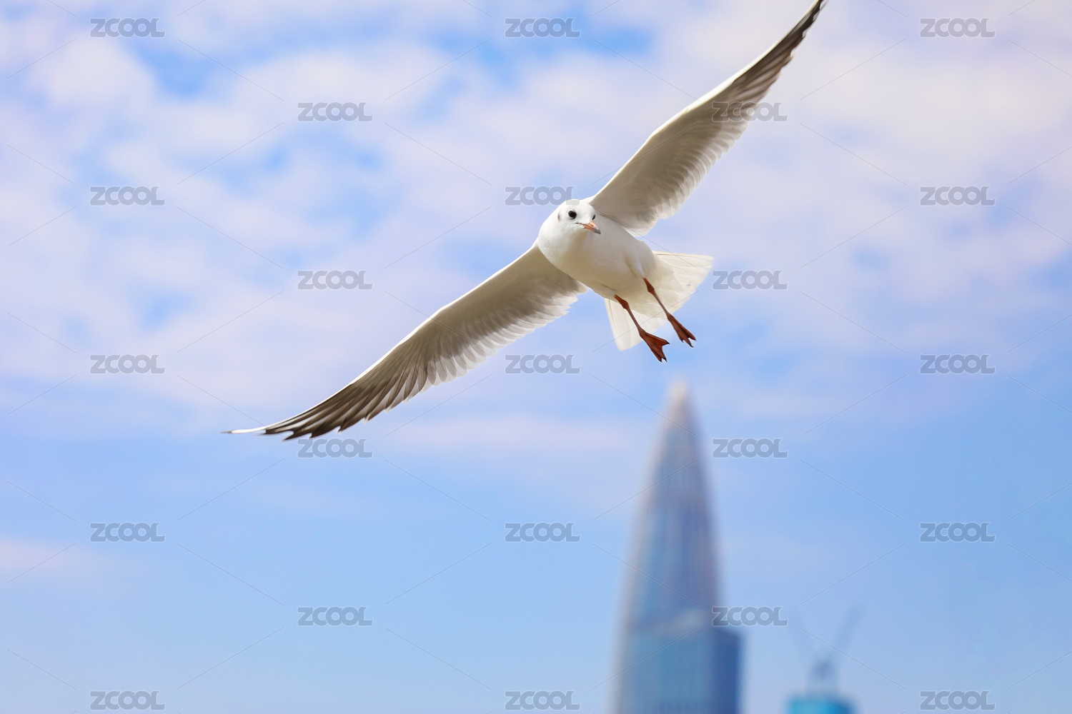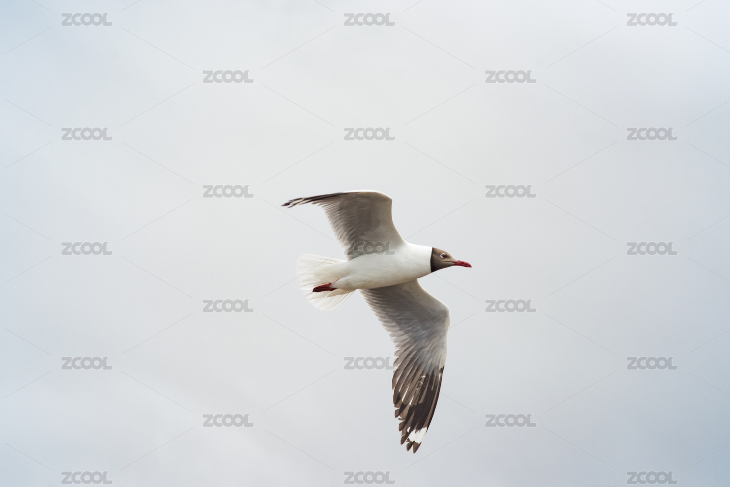 天空一只展翅飛翔的紅嘴海鷗